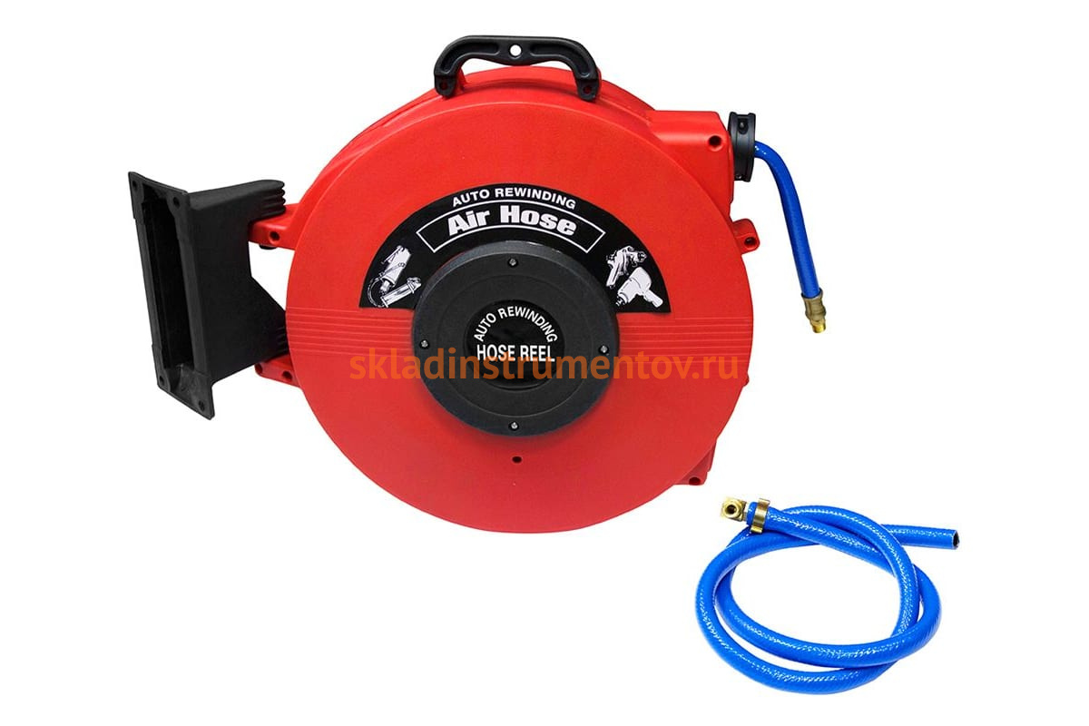 Шланг изготовлен из прочного , гибкого, армированного полиуретана, размер шланга 3/8" (9.5мм), резьбовые соединения 1/4' дюйма. Катушка оснащена возвратным механизмом, что обеспечивает дополнительное удобство по завершению работы. За счет специальных креплений катушку можно применять как для настенного, так и для потолочного монтажа. Габаритные размеры: 500х415х200 мм, масса: 8 кг.
