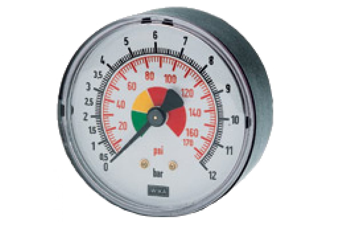 Манометр GAV 25667 предназначен для измерения давления воздуха в компрессорах. Для более точной регулировки на циферблате имеется измерительная шкала, а также цветовая раскладка, показывающая низкое, нормальное и высокое давление. Показания отображаются в барах и фунтах на кв. дюйм (сила).
