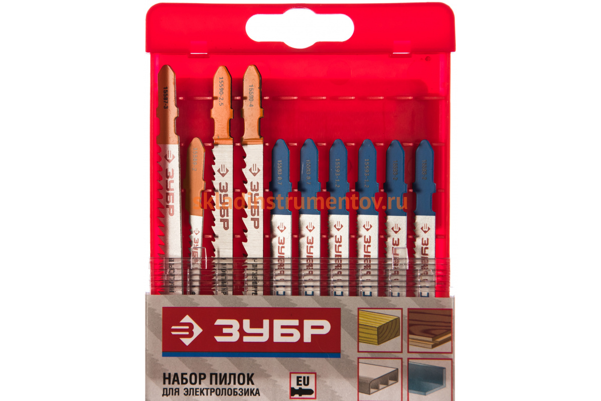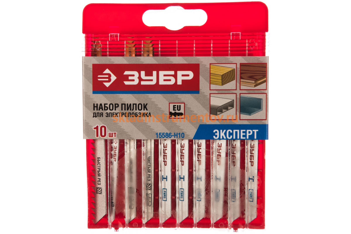Набор пилок 15586-H10 Зубр серии "ЭКСПЕРТ" используется с электролобзиками для выполнения пропилов в различных материалах, таких, как дерево мягких и твердых пород, фанера, пластик, ДСП, а также цветные металлы. В наборе собраны различные пилки для широкого спектра работ, которые различаются по производимому резу. Оснастка отличается отшлифованными, остро заточенными зубьями, что обеспечивает качественную обработку заготовок и, при этом, высокую производительность. Материал полотен хромованадиевая сталь, благодаря чему достигается невосприимчивость инструмента к высоким температурам, а также сопротивляемость к ударным нагрузкам. В наборе собраны пилки для ровного чистого реза, а также быстрого и фигурного. Все пилки в наборе имеют европейский хвостовик EU.