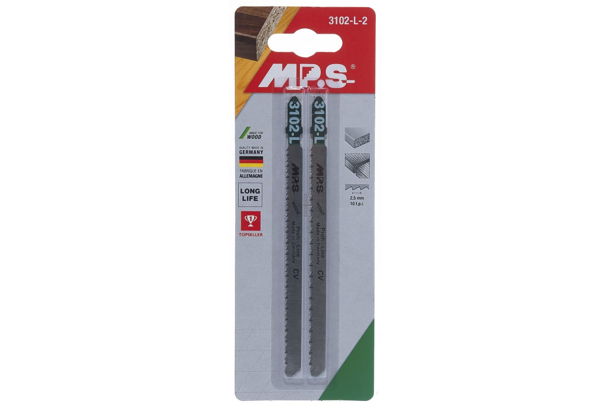 Пилки MPS 3102-L-2 используются для чистого бессколового распила твердой и мягкой древесины, фанеры, ДСП, ДВП и пластмассы толщиной 4-60 мм с помощью электролобзика. Выполнены из качественных материалов, имеют длительный срок эксплуатации.