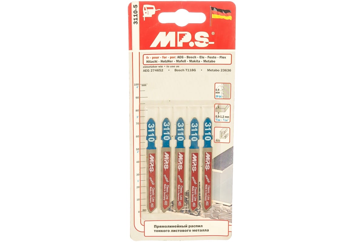 Пилки HSS MPS 3110 используются для распила листовой стали, цветных металлов толщиной 0.9-1.2 мм с помощью электролобзика. Выполнены из качественных материалов, имеют длительный срок эксплуатации.