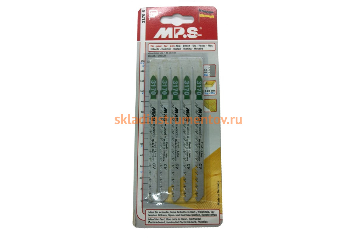Пилки MPS 3170 используется для быстрого и чистого распила древесины, фанеры, ДСП, пластика толщиной 6-60 мм с помощью электролобзика. Выполнены из качественных материалов, имеют длительный срок эксплуатации.
