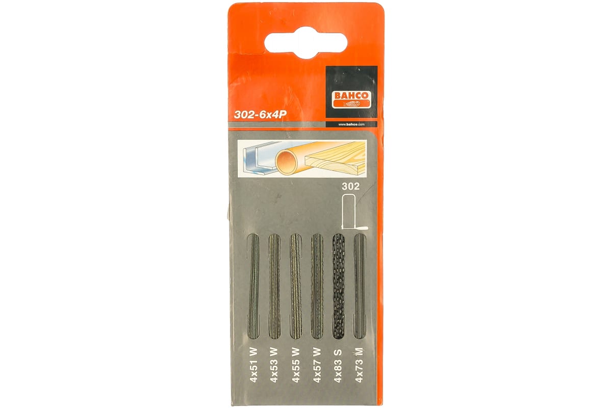 Набор полотен для лобзика (6 видов) Bahco 302-6X4P позволяет распиливать не только древесину, но и металл. Практичен и удобен в использовании. Включает в себя полотна: 51W, 53W, 55W, 57W, 73M и 83S по четыре штуки. Подходит для использования с лобзиками 302 и 502.