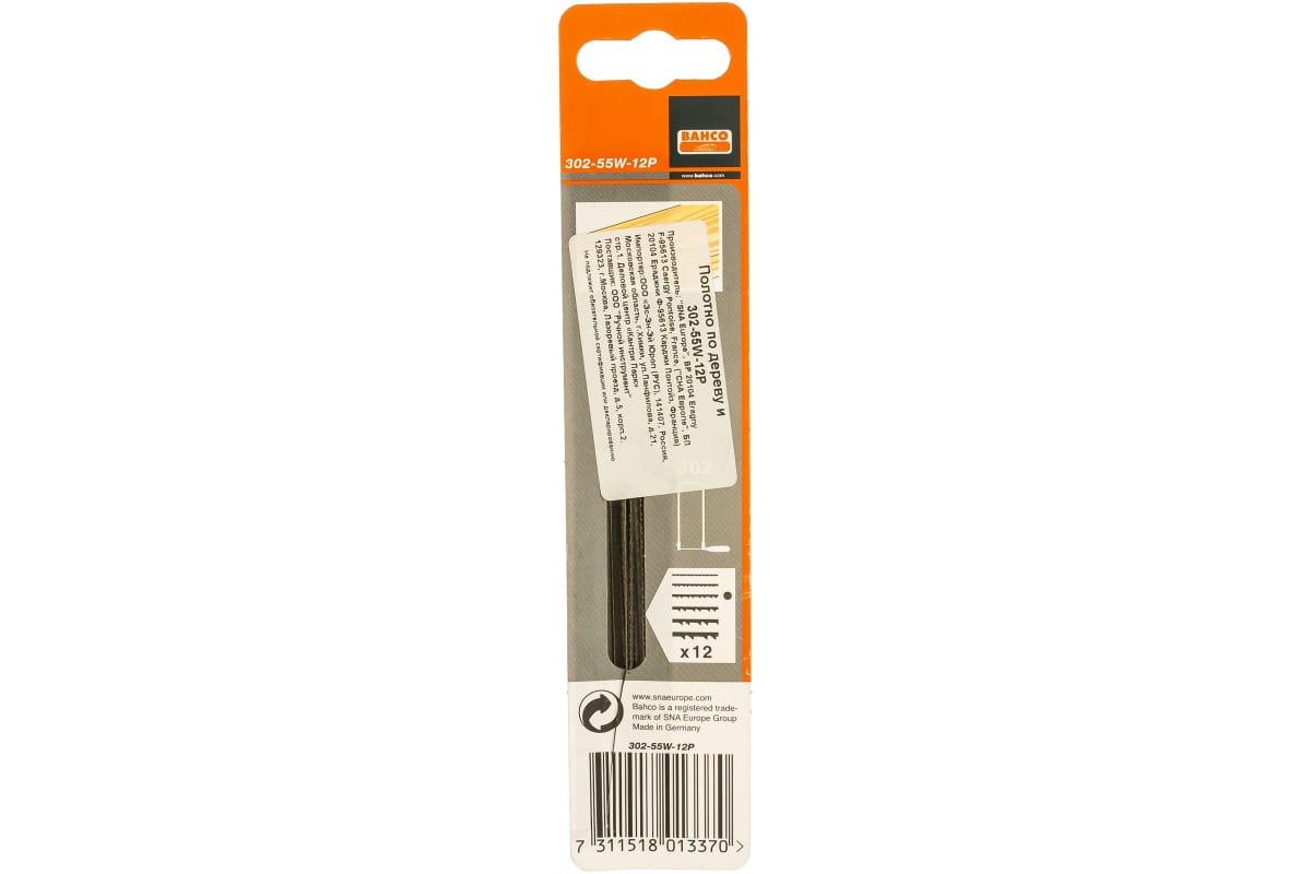 Пилка для лобзика Bahco 302-55W-12P представляет собой режущее полотно, предназначенное для работы по дереву и пластмассе. Изделие может использоваться совместно с лобзиками Bahco 302 и 502.