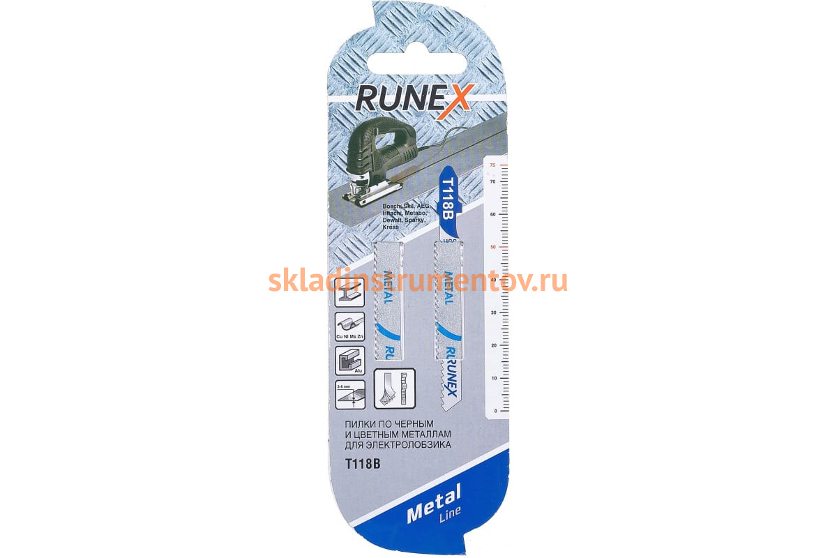 Пилки T118B Runex 555002-2 используются для резки изделий из металла толщиной до 6 мм с помощью электролобзика. Полотна изготовлены из быстрорежущей стали.