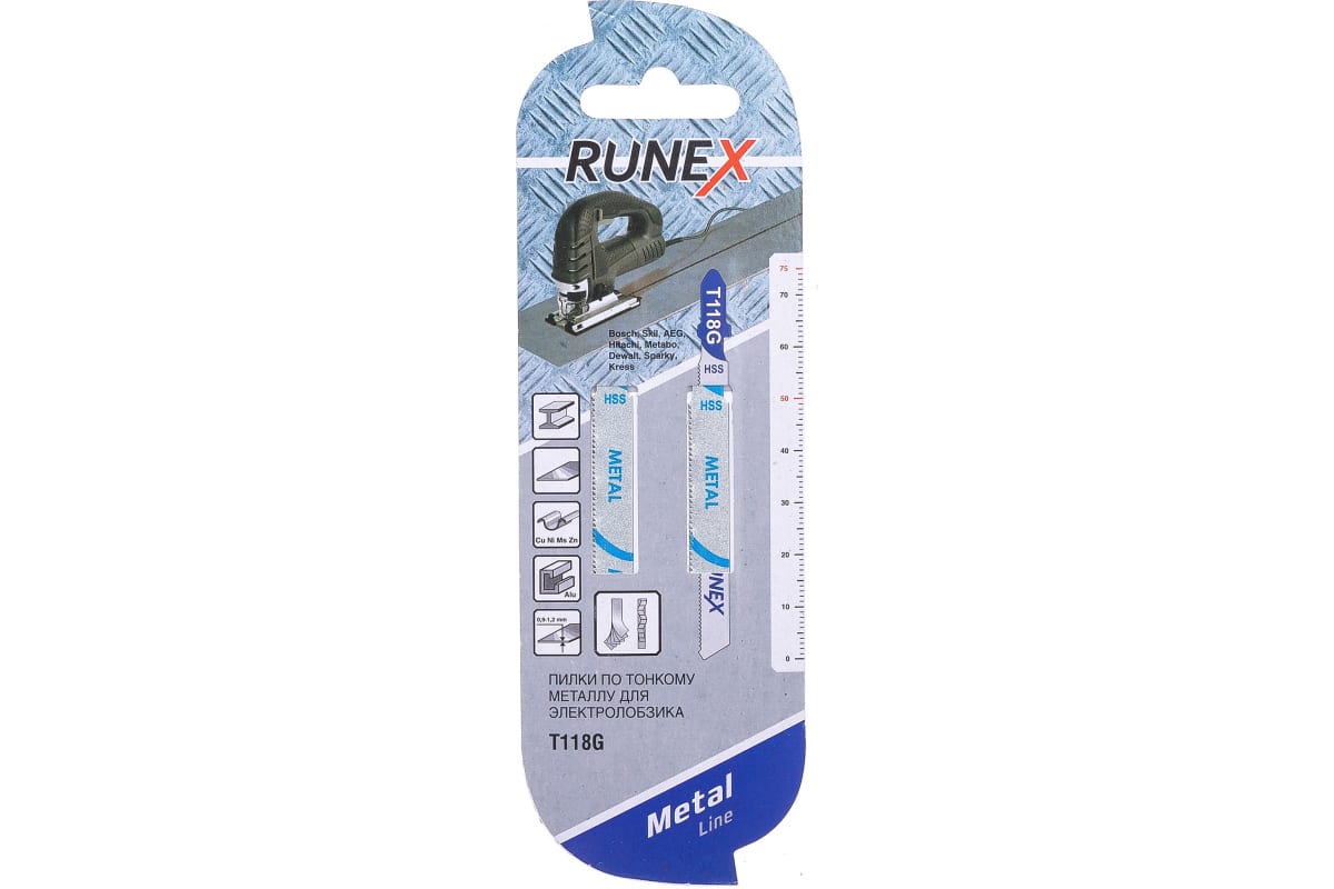 Пилки T118G Runex 555122-2 используются для резки изделий из тонкого металла толщиной до 1.2 мм с помощью электролобзика. Полотна изготовлены из быстрорежущей стали.