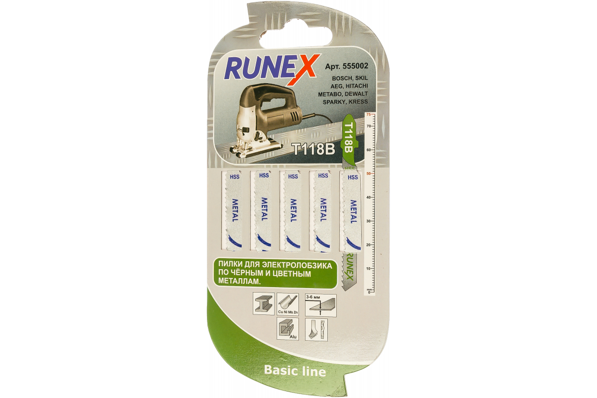 Пилки HSS 75x50 мм, для стали, T118B, 5 шт. Runex 555002 подходят для прямого распила стали, цветных металлов и пластика, толщиной от 4 до 6 мм.