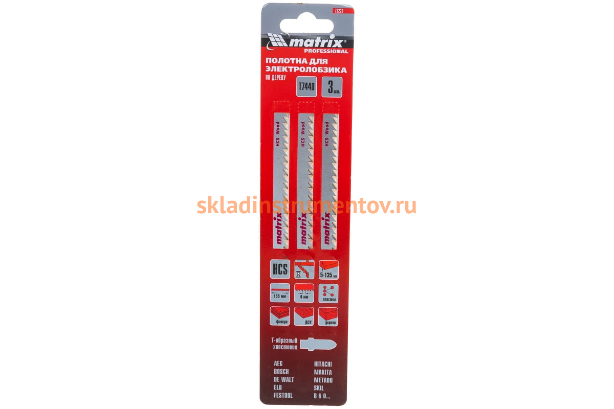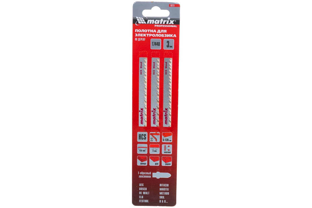 Полотна для электролобзика  по дереву, 3 шт., 155 мм, шаг 4 мм MATRIX 78223