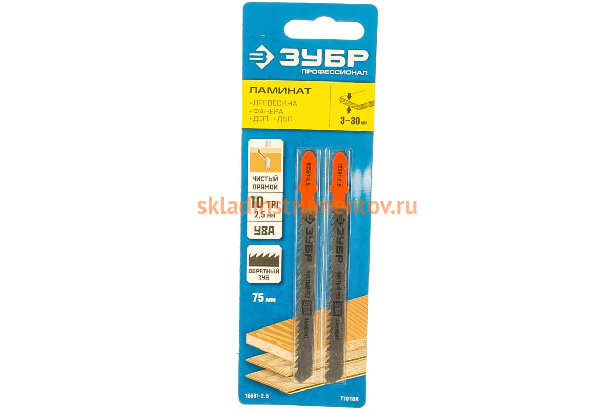 Полотна Профессионал Зубр 15591-2.5_z02 используются с электролобзиками. Применяются для обработки многослойной фанеры, ДСП с покрытием, ламината. Полотно имеет увеличенную толщину, что улучшает устойчивость к излому и перегибу. Оснастка имеет EU - хвостовик. Изготовлено из хромванадиевой стали, что увеличивает рабочий ресурс и стойкость к нагрузкам. Особое строение и заточка зубьев обеспечивает чистый обратный рез.