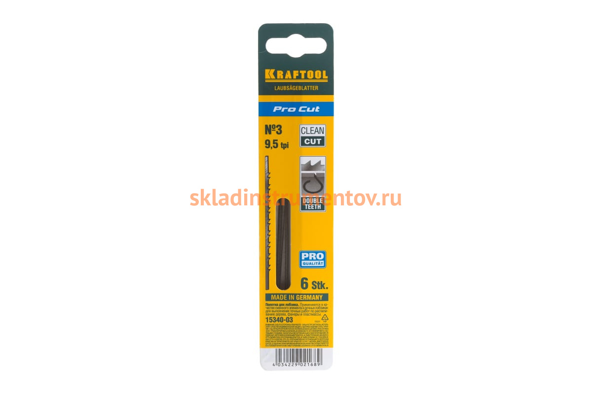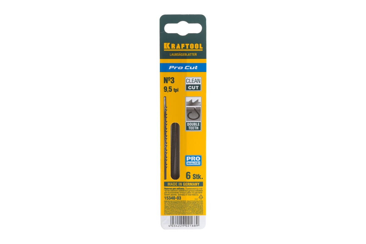 Полотно №3 Kraftool 15340-03 предназначено для резки заготовок из древесины твердых и мягких пород, фанеры и пластика с помощью ручного лобзика. Двойные зубья обеспечивают высокую скорость пиления.