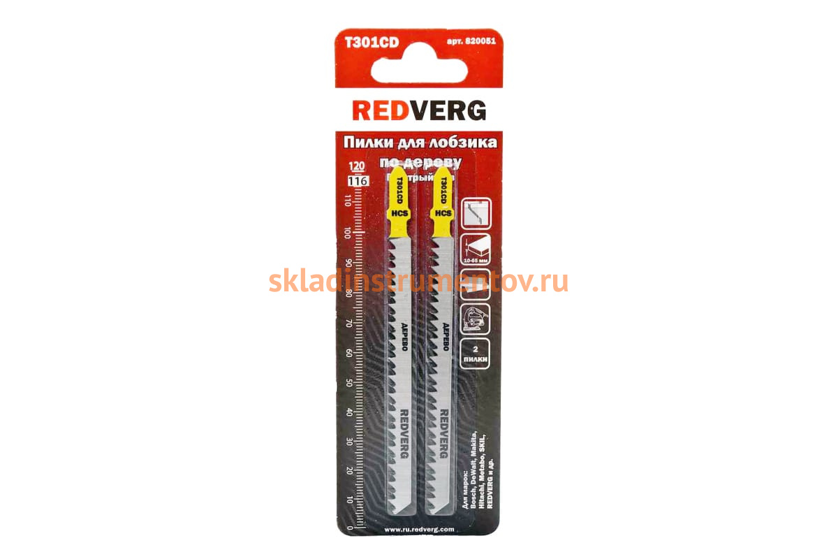 Пилки по дереву, ДСП T301CD (2 шт; быстрый рез; HCS) для лобзика REDVERG 820051 6623534