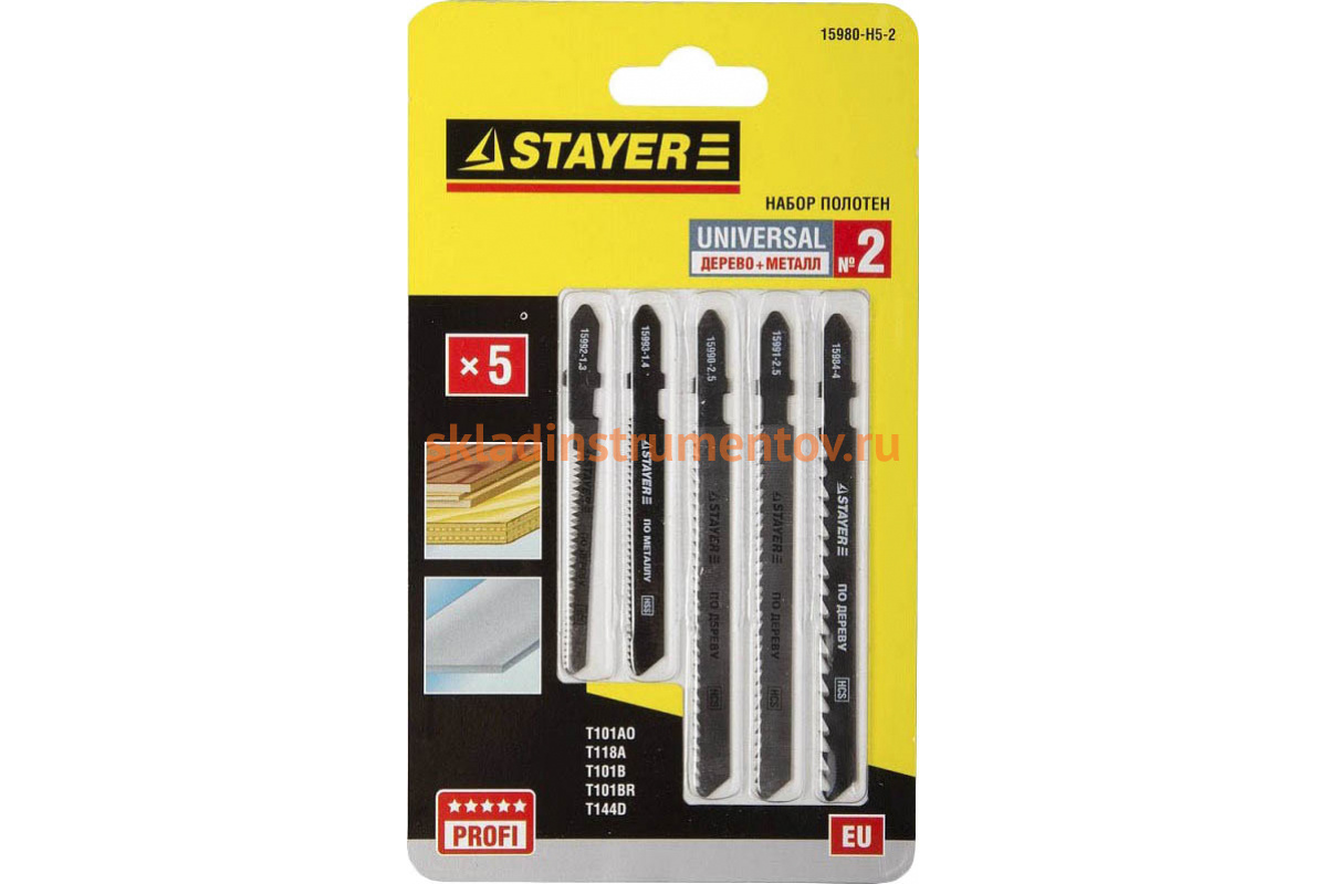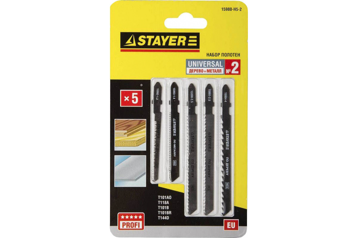 —Набор полотен STAYER Универсал №2 по дереву и металлу для электролобзика EU T144D T101B T101BR T101AO T118A 5 шт. 15980-H5-2—