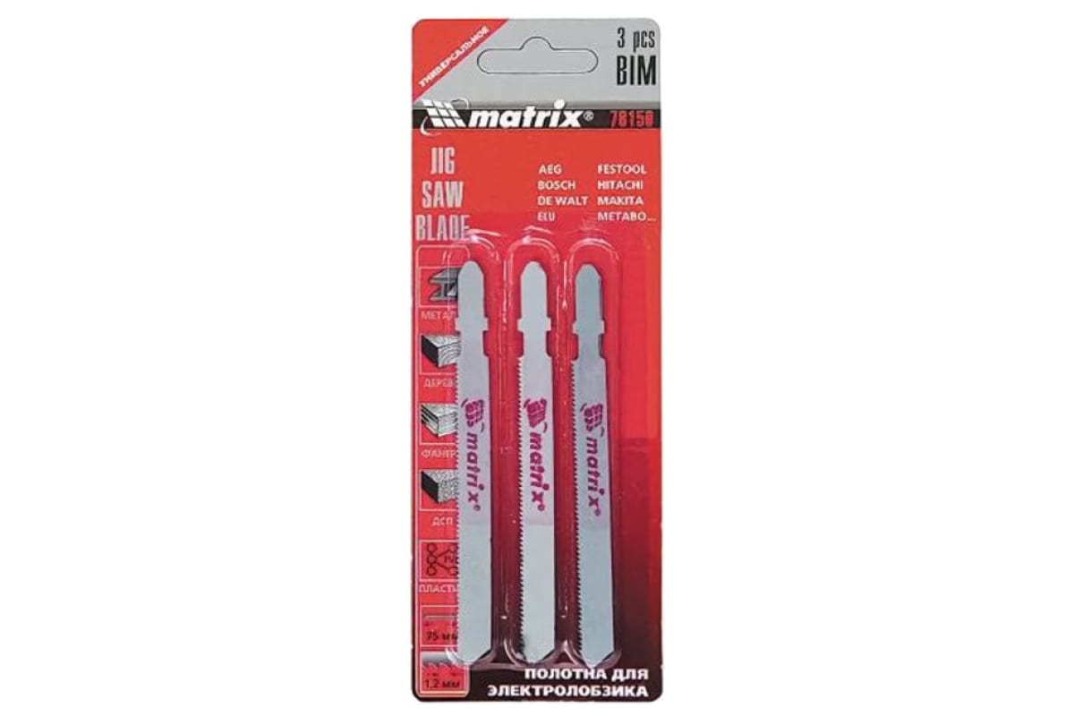Полотна MATRIX 78150 предназначены для резки древесины, фанеры, ДСП, металла, пластика с помощью электролобзика. Изготовлены из биметалла.