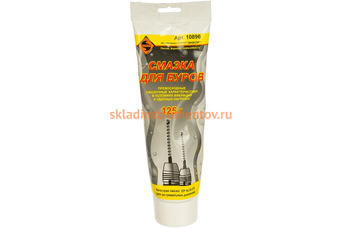 Смазка для буров Энкор 10896, объем 125 мл. Для смазывания хвостовой части буров при интенсивной работе, что увеличивает ресурс бура и патрона.