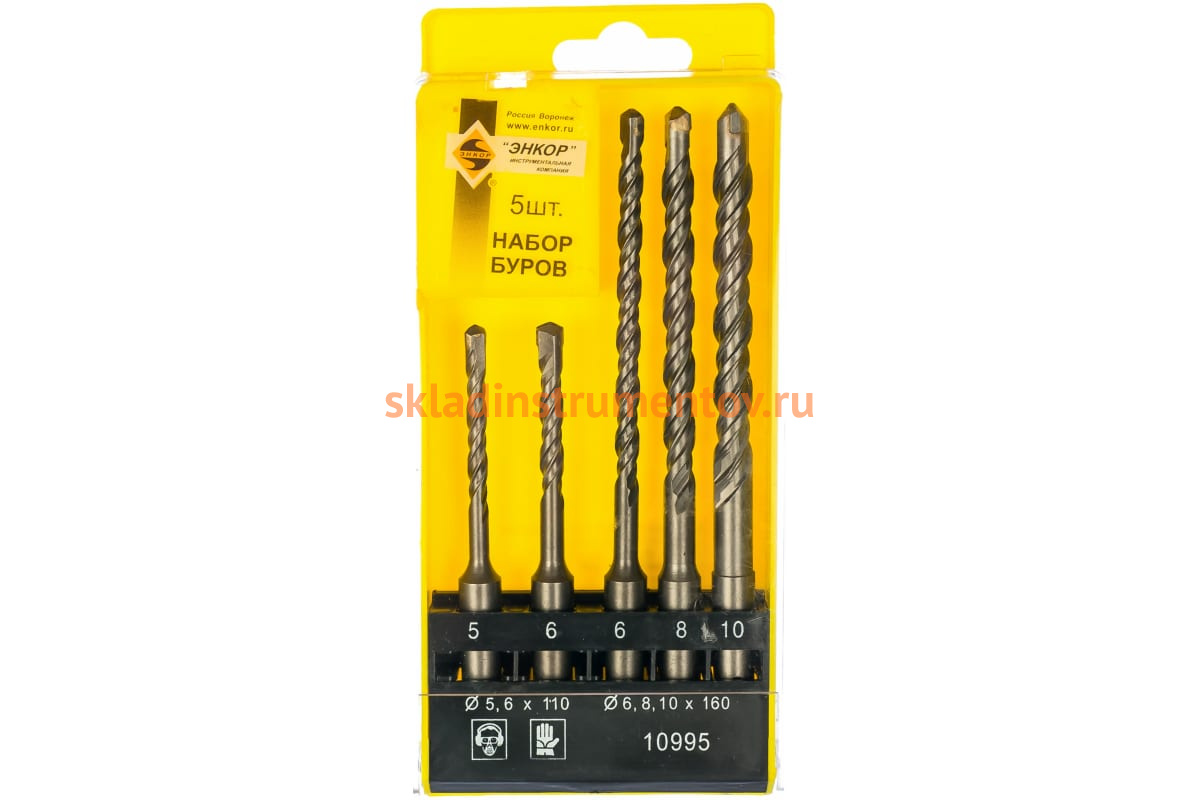 Набор Энкор 10995 из 5 буров по бетону с усиленной спиральной канавкой под патрон SDS-plus в пластиковой упаковке. Размеры: