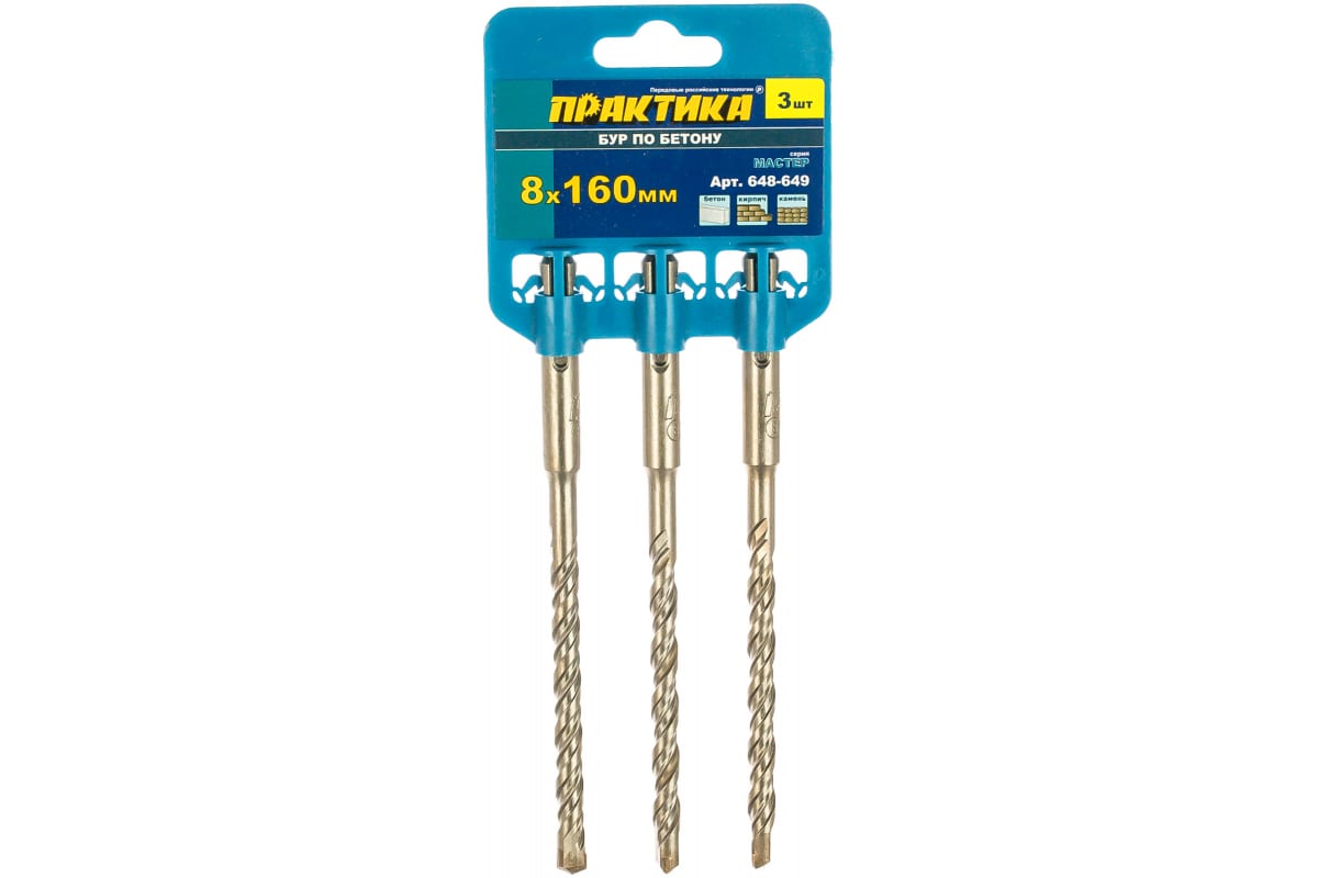 —Бур по бетону серия Мастер (3 шт; 8х160 мм; SDS-plus) ПРАКТИКА 648-649