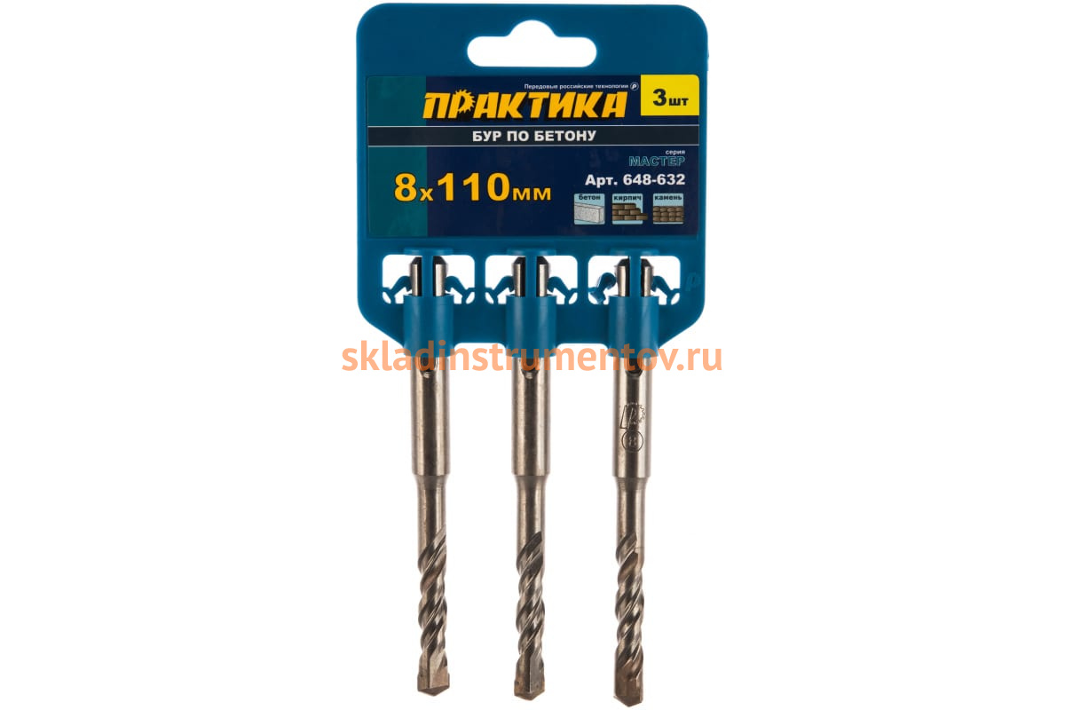 —Бур по бетону серия Мастер (3 шт; 8х110 мм; SDS-plus) ПРАКТИКА 648-632