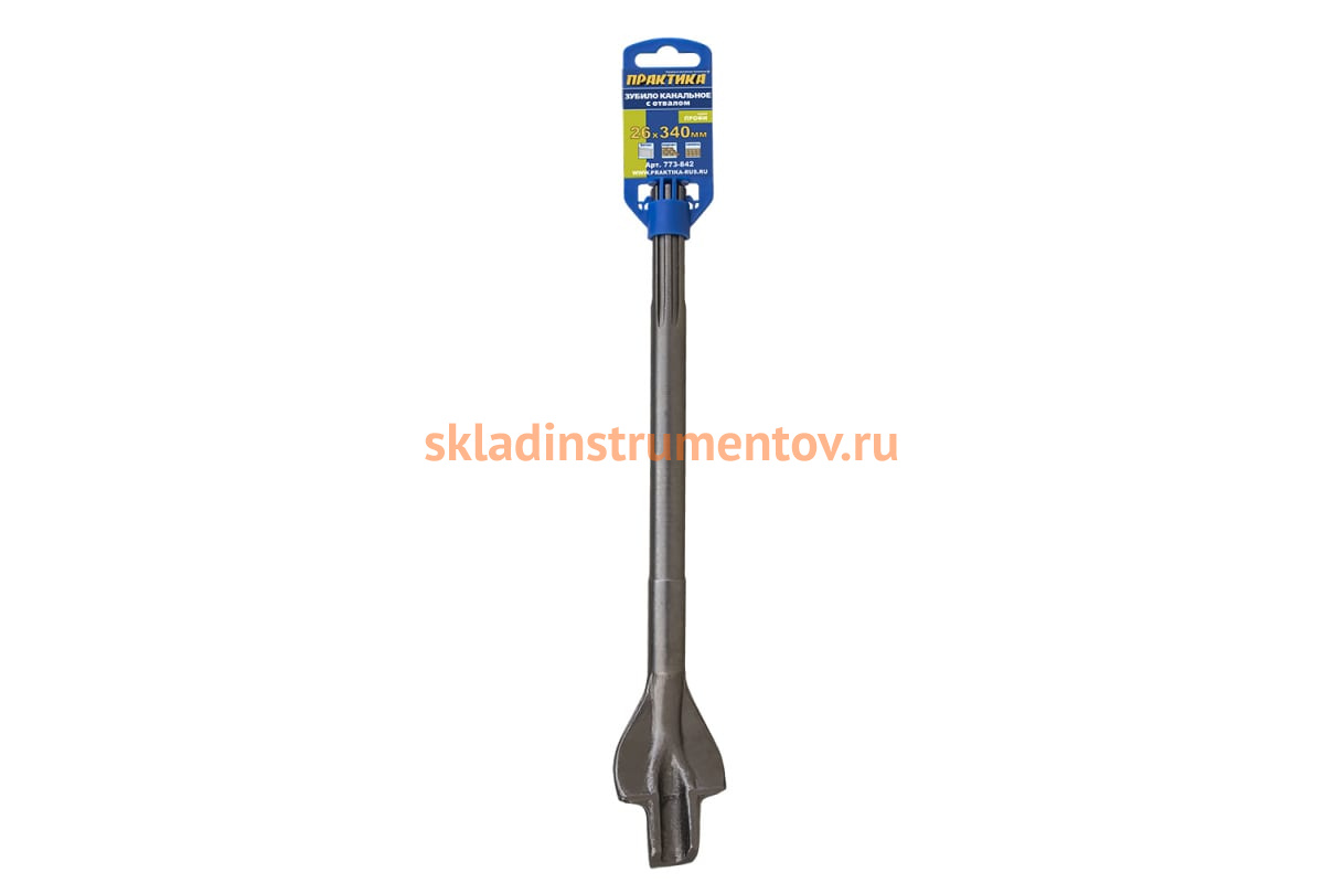 Зубило канавочное с отвалом ПРАКТИКА 773-842 является сменным элементом для перфораторов и отбойных молотков с типом крепления SDS-Max. Применяется для штробления бетона и кирпичных кладок и для расширения каналов в стенах под коммуникации.