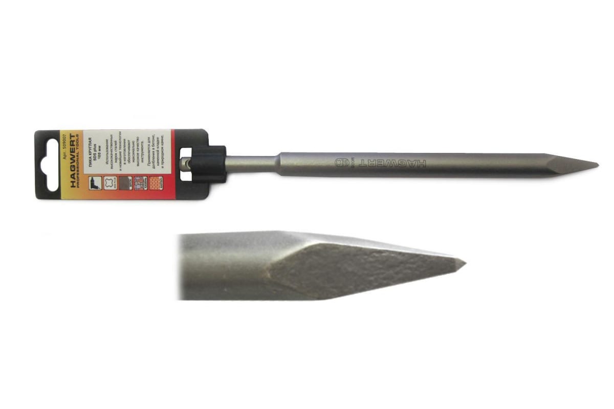 Пика HAGWERT 509007 изготовлена из высокопрочной стали и используется в ударных перфораторах и отбойных молотках с типом крепления SDS-max. Благодаря специальным методам обработки и закалки она обладает оптимальной стойкостью и служит очень долго. Подходит для долбежных работ по бетону, каменной кладке и природному камню. Твердость по Роквелу HRS 52-56.