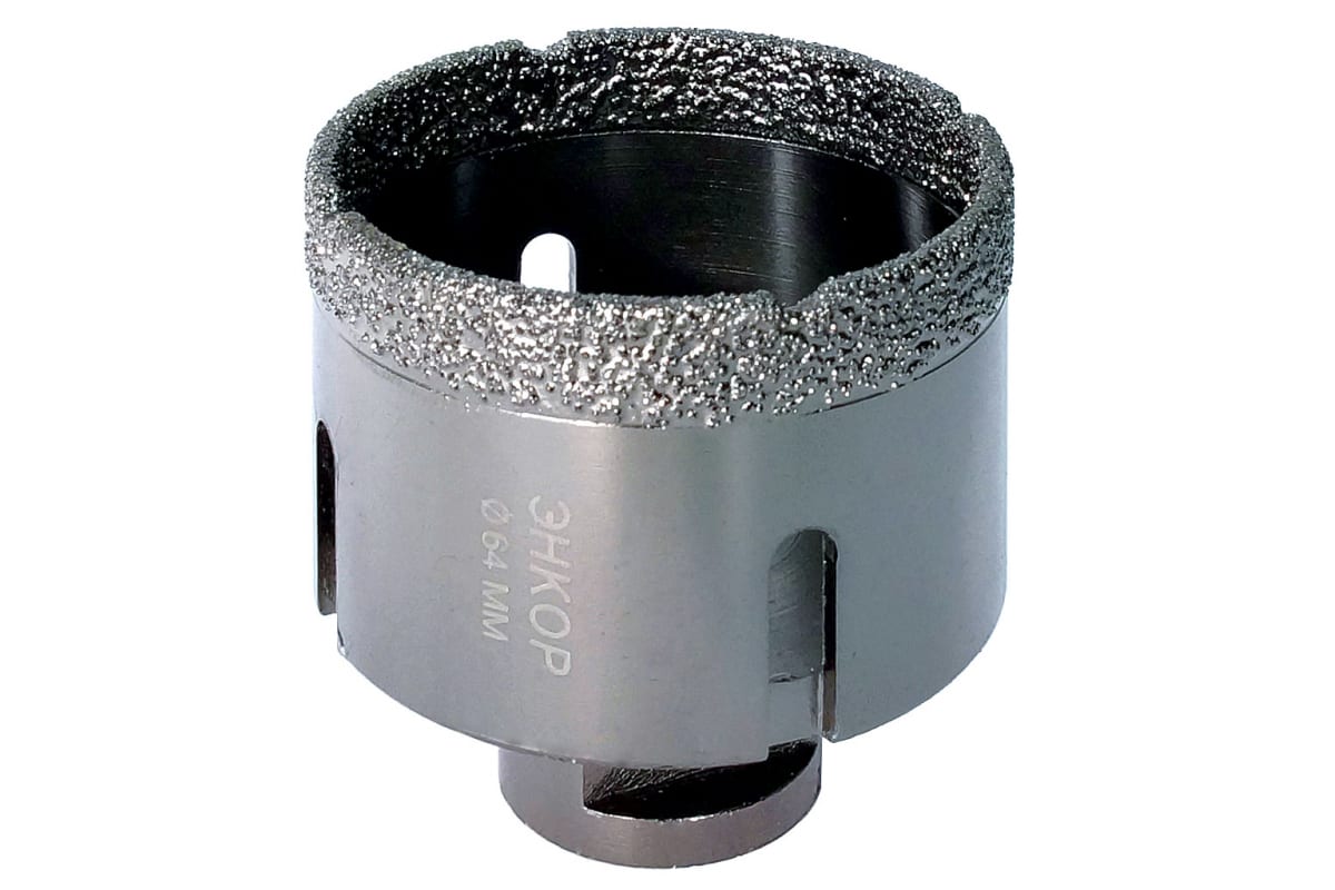 Коронка алмазная Энкор 48314 предназначена для угловых шлифовальных машин. Применяется для сухого сверления гранита, мрамора, бетона, кирпича, керамической плитки и стекла. Сухой рез обеспечивается за счет вакуумного метода спекания алмазных сегментов при изготовлении коронки. Высота алмазного слоя – 10 мм. Тело коронки цельное, что обеспечивает высокую герметичность, которая позволяет работать на высоких оборотах.