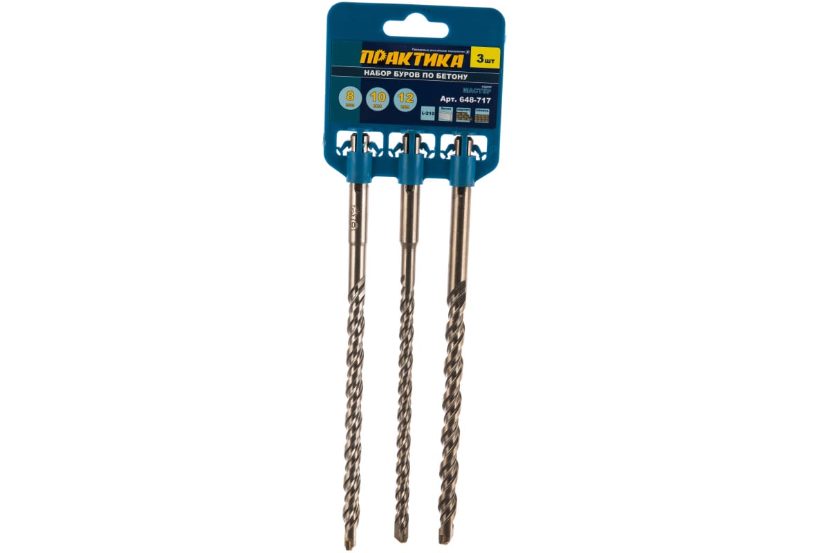 Набор буров Мастер (3 шт; 8, 10, 12 х 210 мм; SDS-plus) ПРАКТИКА 648-717