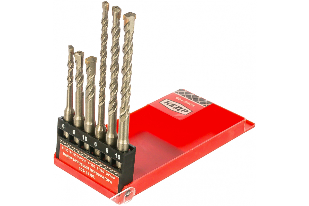 Буры для перфоратора SDS+ набор 6 шт. Кедр 28123 совместимы со строительным электроинструментом популярных брендов. Модель используется при профессиональных ремонтных работах.
