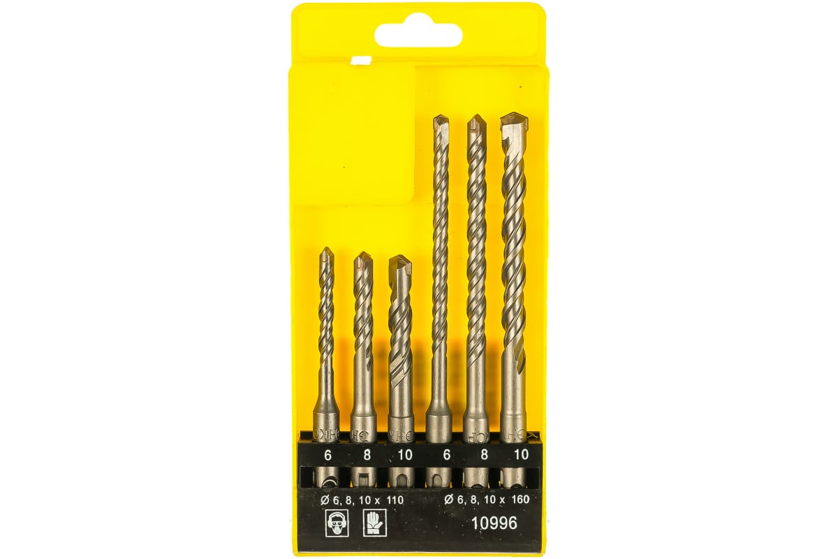 В набор входят буры (диаметр х длина): 6х110 мм; 8х110 мм; 10х110 мм; 6х160 мм; 8х160 мм; 10х160 мм.