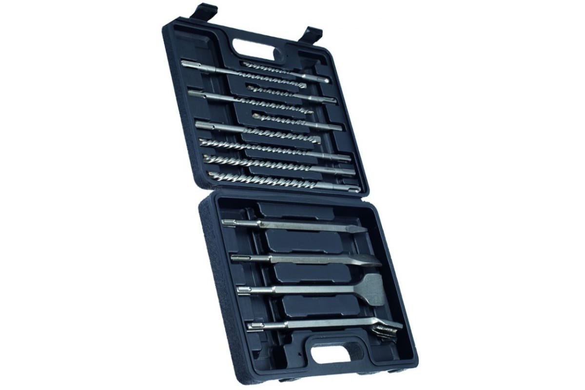 Набор буров по бетону в кейсе Hardax 36-7-213 включает и буры и зубила для ремонтных работ.