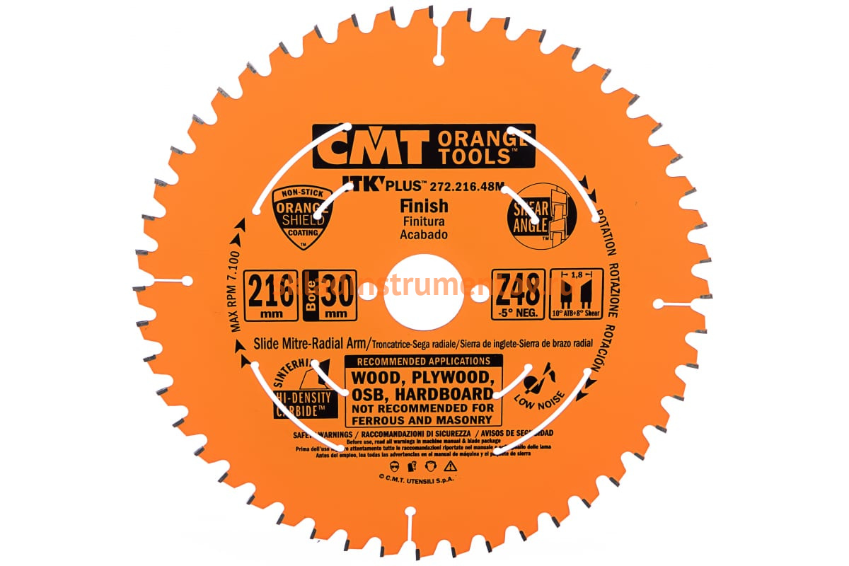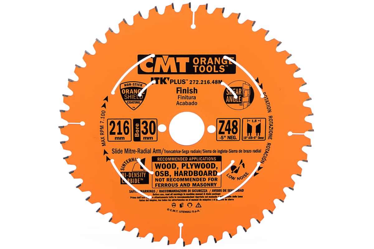 Пильный диск CMT 272.216.48M используется в ручных циркулярных и аккумуляторных пилах. Его применяют для получения тонкого продольного и поперечного пропила в мягкой и твердой древесине, а также в фанере.