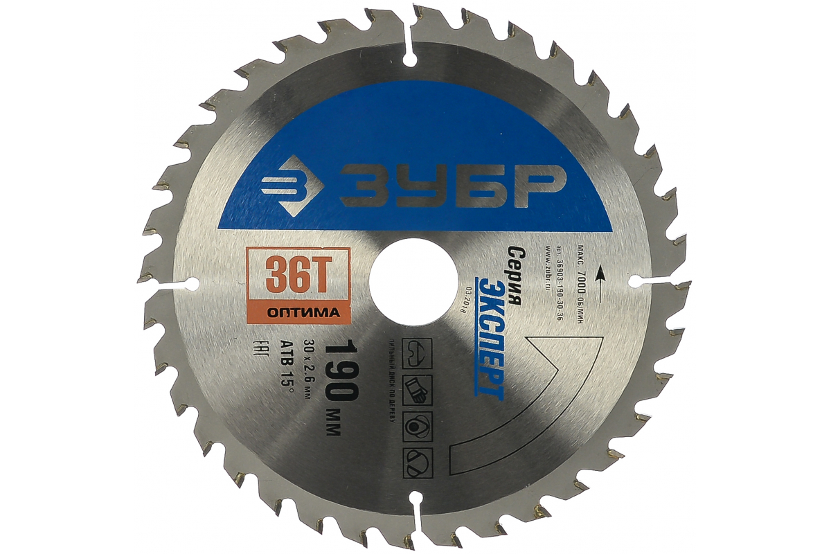Пильный диск Зубр 36903-190-30-36 подходит для использования в циркулярных пилах. Предназначен для быстрых продольных и поперечных резов в мягкой и твердой древесине естественной влажности, фанере, а также в ДСП с покрытием.