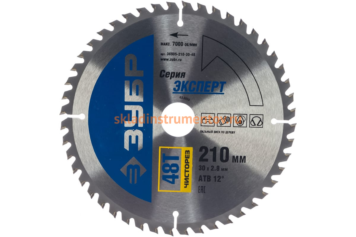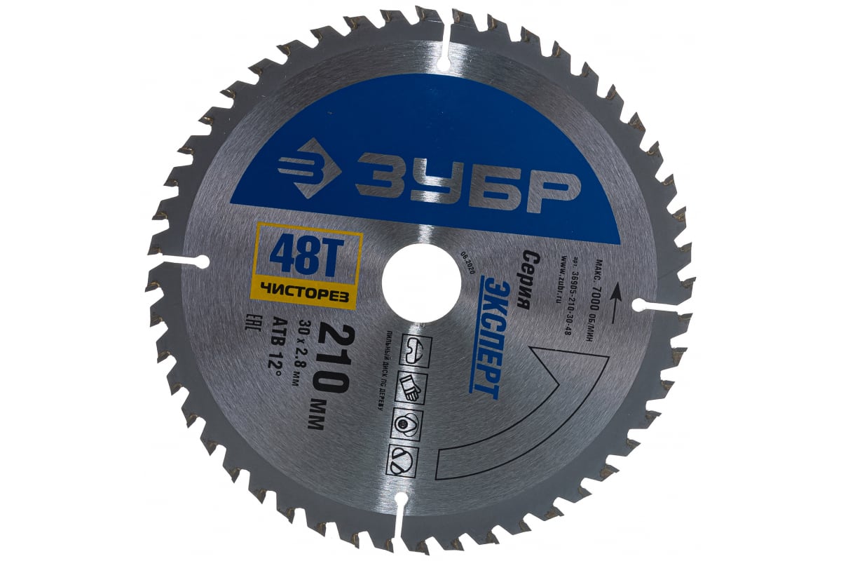 Пильный диск 36905-210-30-48 Зубр серии "Чистый рез" используется с циркулярными пилами. Оснастка применяется для пиления древесины различных пород, а также ДСП, панелей с покрытием и др. С помощью диска осуществляется поперечная и продольная обработка заготовок. Отшлифованные зубья оснащены твердосплавными пластинами (ВК8), за счет чего появляется возможность распиливать даже особо прочные заготовки, не теряя при этом качество реза. Зубья диска выполнены в форме вершины, а скос составляет 12°, за счет чего достигается максимально качественное пиление древесины. Еще одной особенностью является заточка зубьев с трех сторон, что гарантирует их правильную геометрию, а значит и эффективную работу.