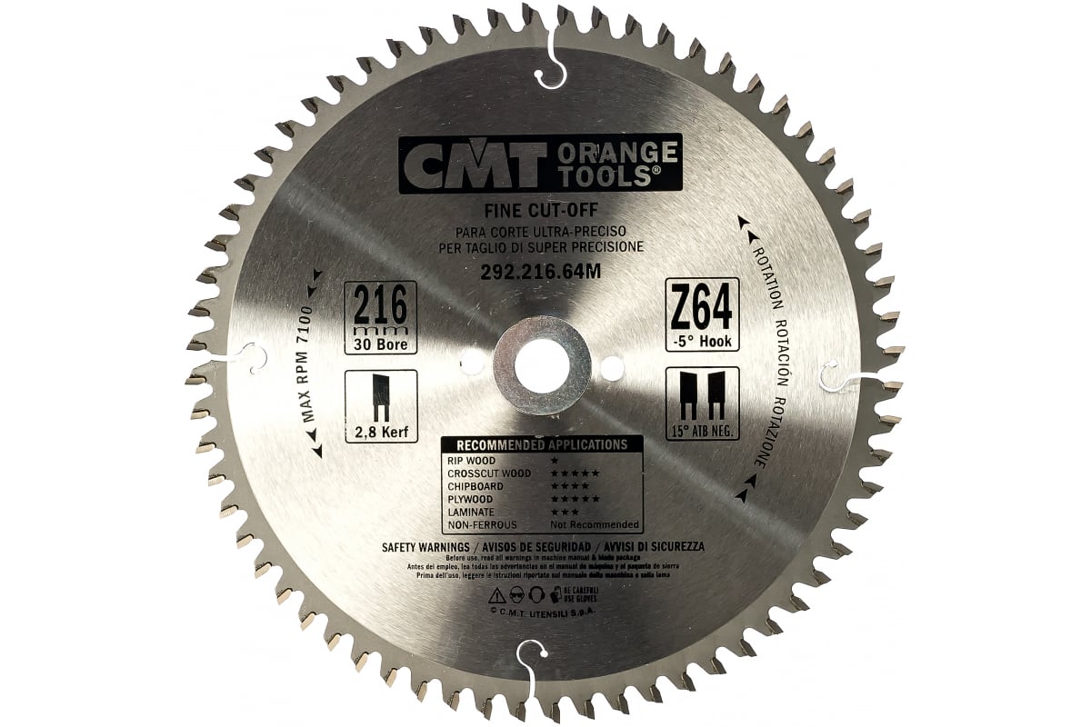 Пильный диск CMT 292.216.64M используется в дисковых пилах для поперечного реза мягкой или твердой древесины, фанеры. Особая конфигурация зубьев (переменно-скошенные) позволяет работать мягко и эффективно.