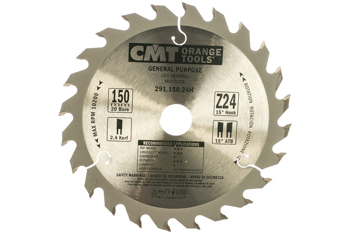 Пильный диск CMT 291.150.24H является универсальным. Его используют как для продольного, так и поперечного пиления древесины и фанеры. Диск оснащен отверстиями для крепления на большинстве инструментов. Зубья оснастки изготовлены из твердого сплава (К10). Благодаря особой конфигурации зубьев при работе данным диском достигается необходимая скорость пиления и эффективность.