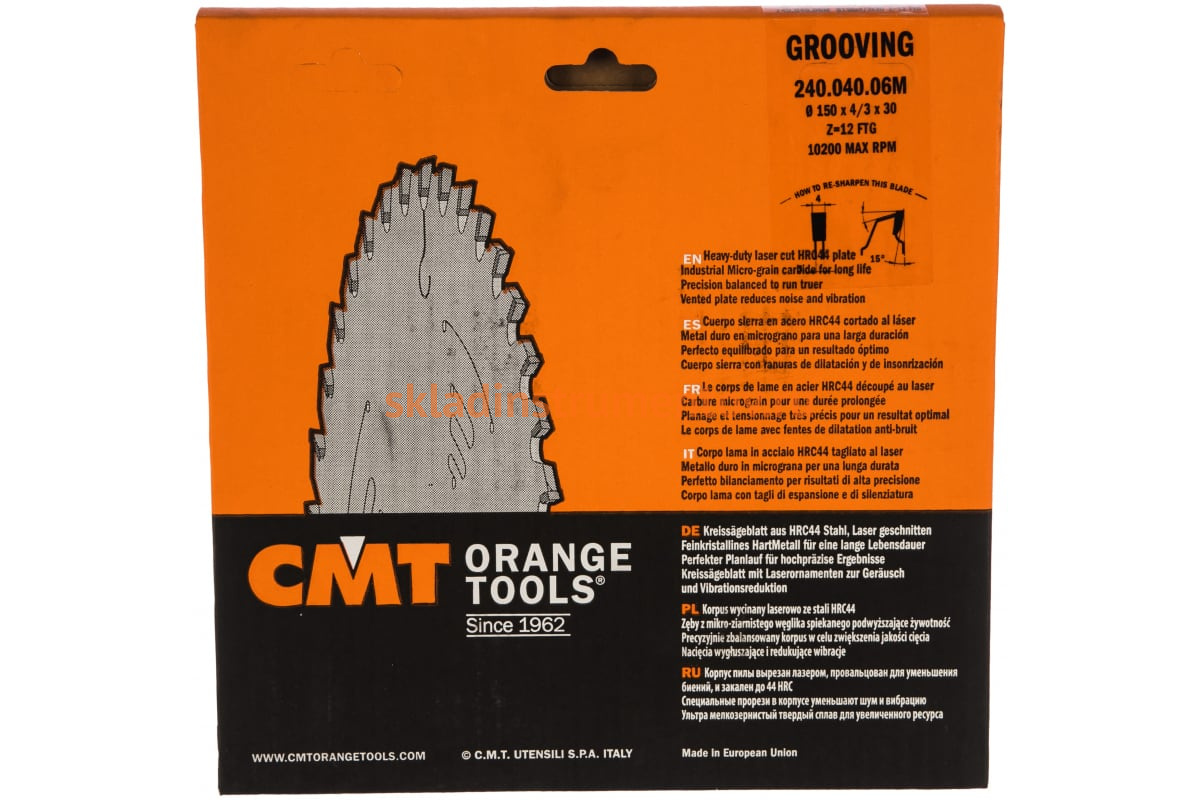 Пильный диск CMT 240.040.06M имеет усиленное основание и используется в ручных циркулярных, аккумуляторных и торцовочных пилах. Данный диск оснащен твердосплавными зубьями и предназначен для выпиливания пазов и канавок как в мягкой, так и твердой древесине, а также в древесных панелях и пластике.