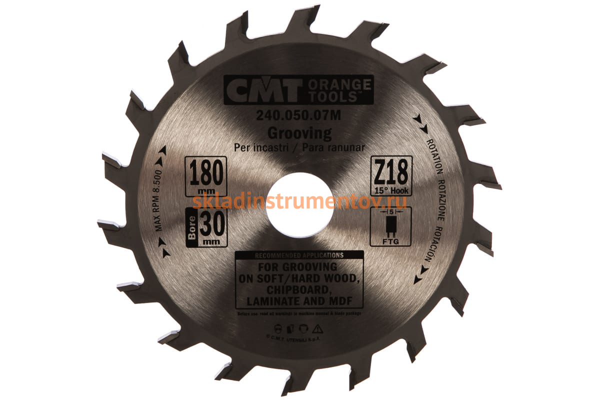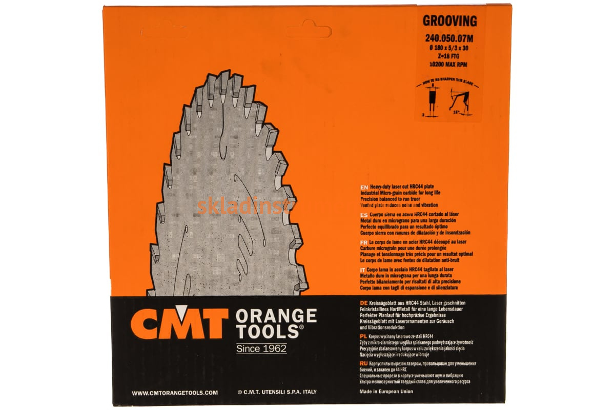 Пильный диск CMT 240.050.07M имеет усиленное основание и используется в ручных циркулярных, аккумуляторных и торцовочных пилах. Данный диск оснащен твердосплавными зубьями и предназначен для выпиливания пазов и канавок как в мягкой, так и твердой древесине, а также в древесных панелях и пластике.