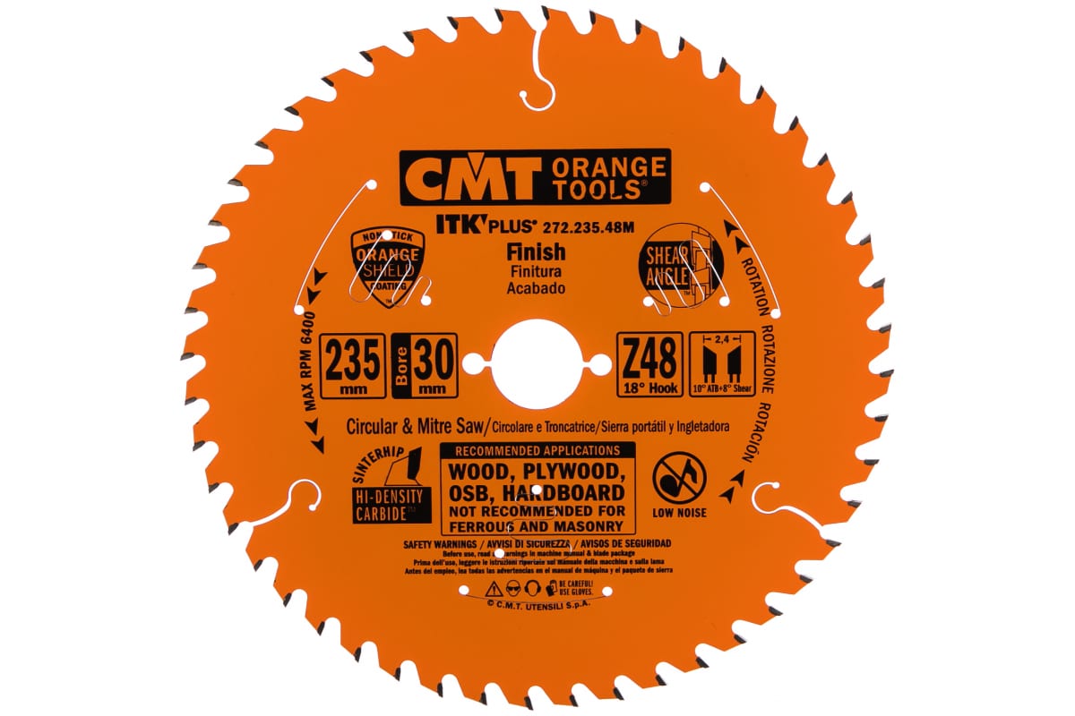 Пильный диск CMT 272.235.48M используется в ручных циркулярных и аккумуляторных пилах. Его применяют для получения тонкого продольного и поперечного пропила в мягкой и твердой древесине, а также в фанере. В комплекте с данным диском поставляется переходное кольцо с посадочным диаметром 25 мм.