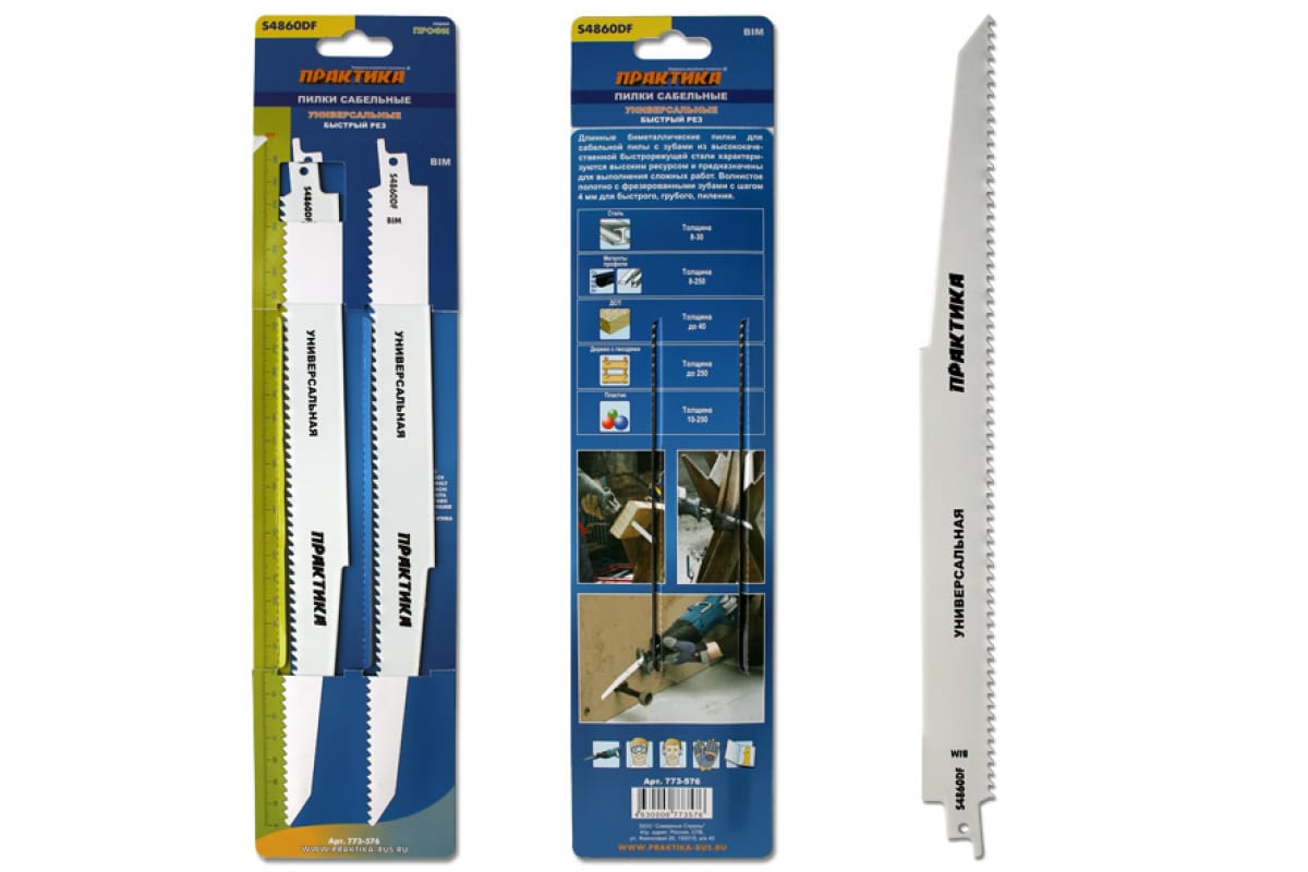 —Пилки универсальные S4860DF (300 мм; BIM) для сабельной пилы ПРАКТИКА 773-576—