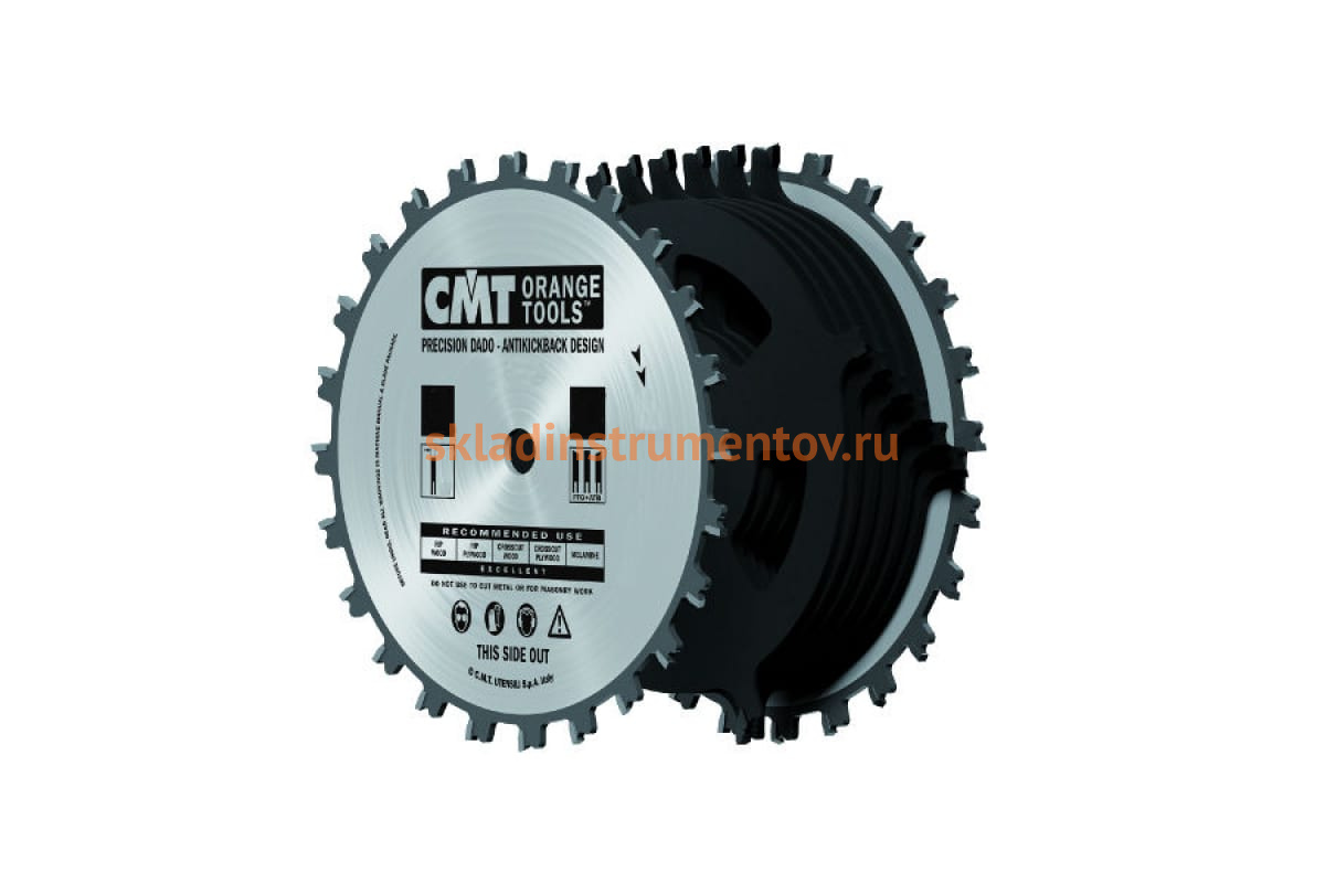 Диск пильный для пазов (2 шт; 200x15.87 мм; Z24+4; FTG+ATB) DADO CMT 230.524.08 позволяет делать глухие пазы с ровными стенками и дном без сколов в древесине, ДСП, фанере и МДФ. Устанавливается на вал настольной или стационарной пилы. Поставляется в наборе с четырехзубыми промежуточными дисками и круглыми металлическими шаблонами. Предупреждение: при сборке и работе инструмента зубья дисков не должны соприкасаться.