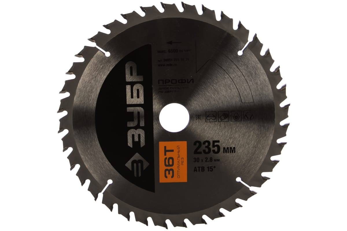 Диск Зубр 36851-235-30-36 является сменным элементом для торцовочных, циркулярных пил и распиловочных станков. Применяется для быстрого, чистого пропила по твердой и мягкой древесине, фанере, неламинированному ДСП, ДВП и МДФ, волокнистым плитам без покрытия, строительному брусу, деревянным балкам. Зубья изготовлены из улучшенного сплава ВК6Х и ВК8Х. Форма зубьев — ATB. Корпус диска изготовлен из высокоуглеродистой стали 65. Каждый диск проходит алмазную заточку на станках с ЧПУ, закалку с дополнительной стадией термообработки и контроль балансировки.