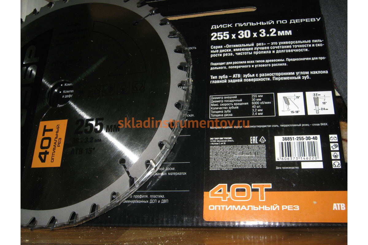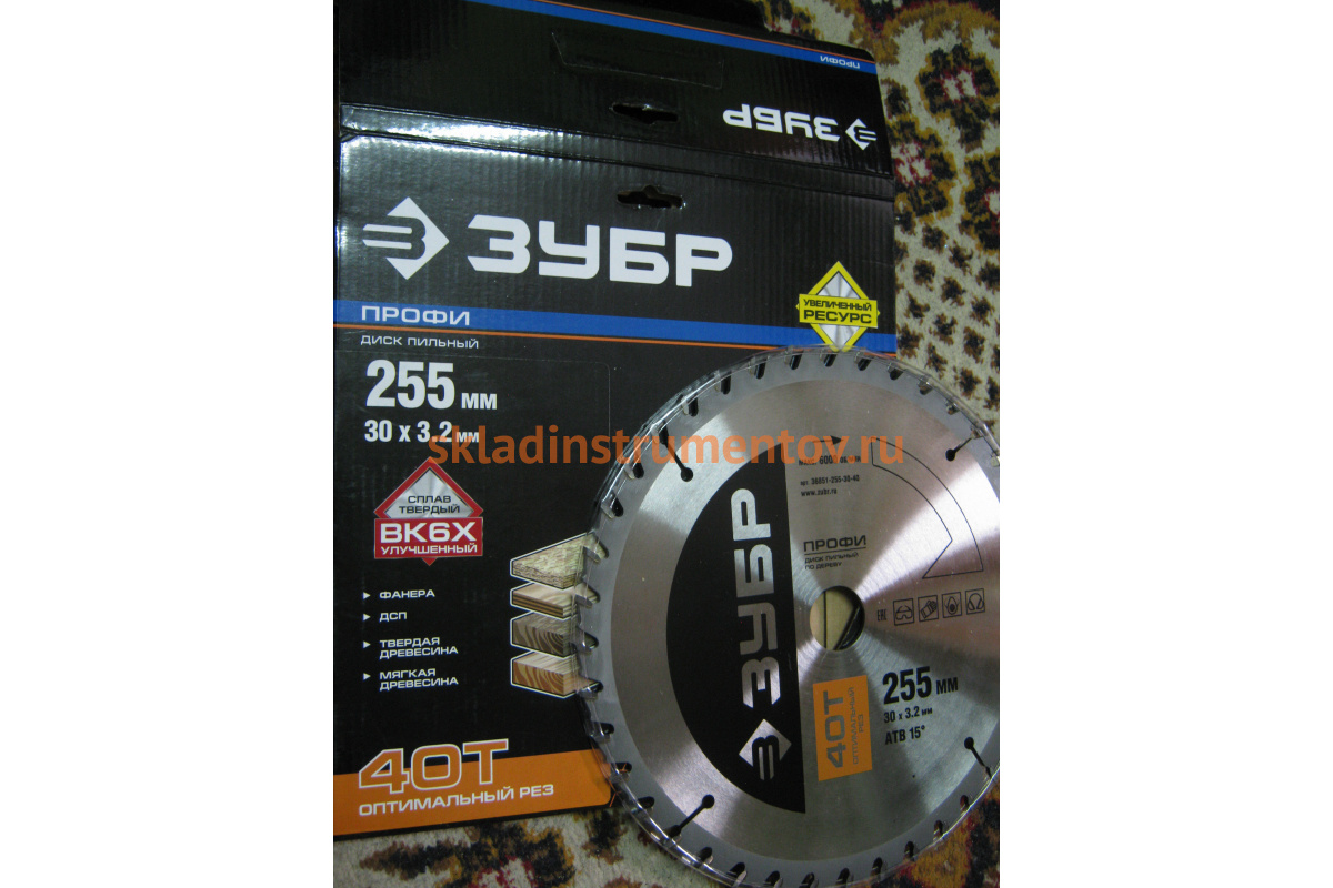 Диск Зубр 36851-255-30-40 является сменным элементом для торцовочных, циркулярных пил и распиловочных станков. Применяется для быстрого, чистого пропила по твердой и мягкой древесине, фанере, неламинированному ДСП, ДВП и МДФ, волокнистым плитам без покрытия, строительному брусу, деревянным балкам. Зубья изготовлены из улучшенного сплава ВК6Х и ВК8Х. Форма зубьев — ATB. Корпус диска изготовлен из высокоуглеродистой стали 65. Каждый диск проходит алмазную заточку на станках с ЧПУ, закалку с дополнительной стадией термообработки и контроль балансировки.