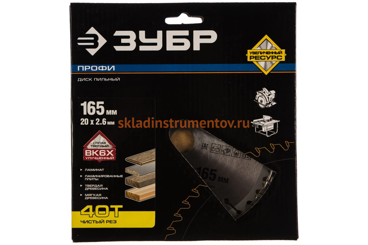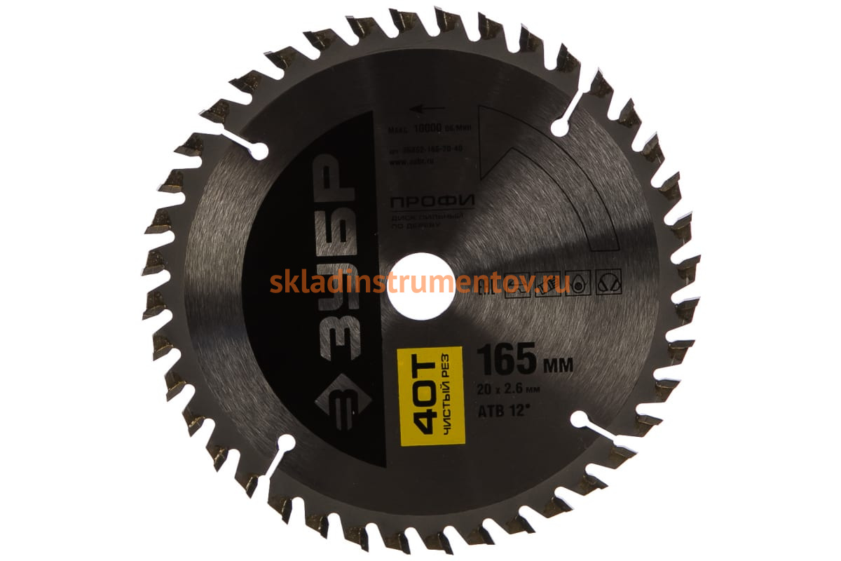 Диск Зубр 36852-165-20-40 является сменным элементом для торцовочных, циркулярных пил и распиловочных станков. Применяется для точного, особо чистого пропила по фанере, столярным плитам и щитам, паркетным доскам, прессованной клееной древесине, ламинированному ДСП, МДФ, комбинированным материалам. Зубья изготовлены из улучшенного сплава ВК6Х и ВК8Х. Форма зубьев — ATB. Корпус диска изготовлен из высокоуглеродистой стали 65. Каждый диск проходит алмазную заточку на станках с ЧПУ, закалку с дополнительной стадией термообработки и контроль балансировки.