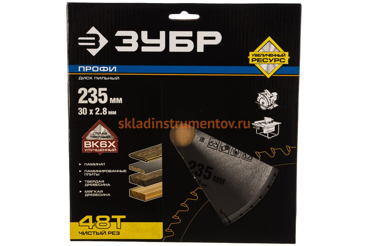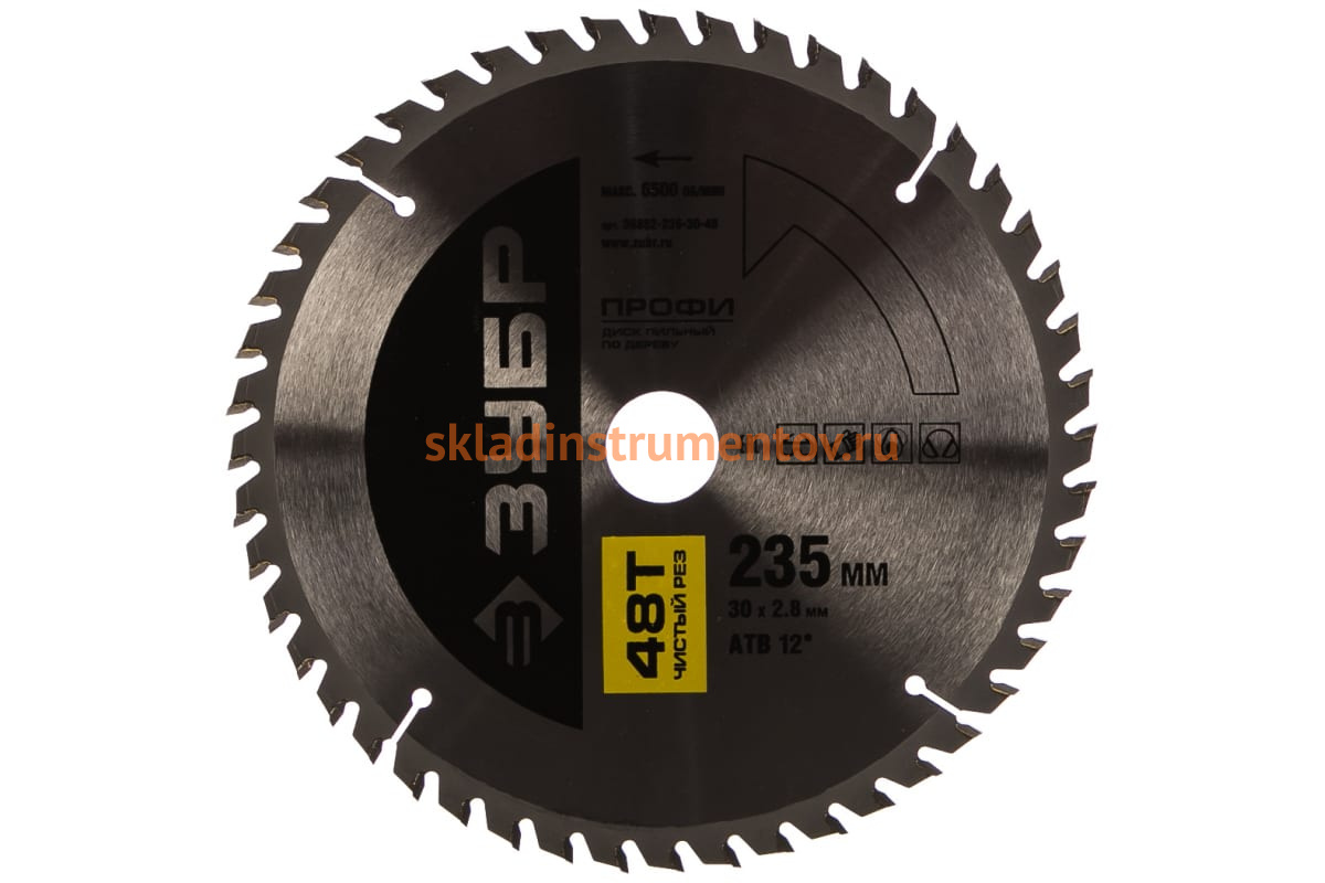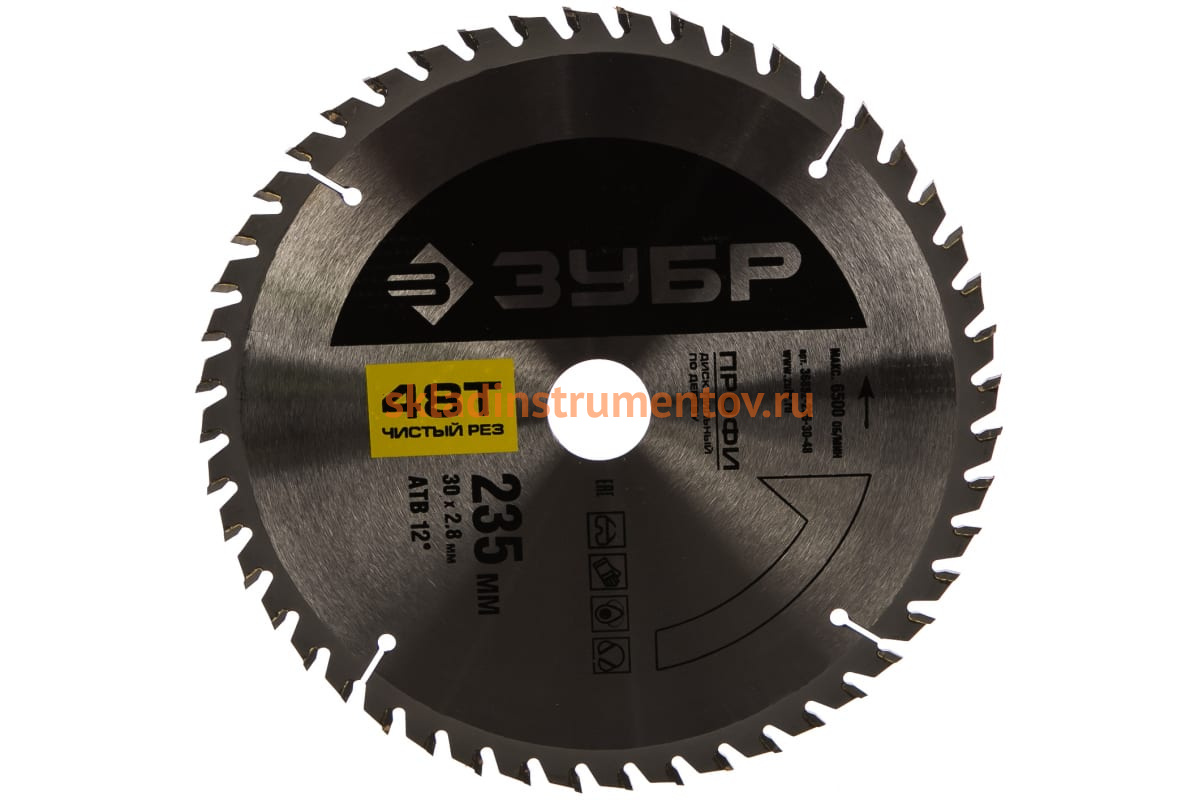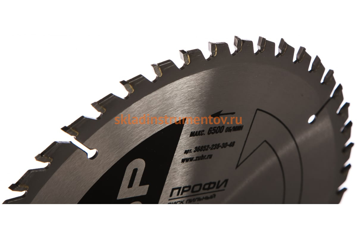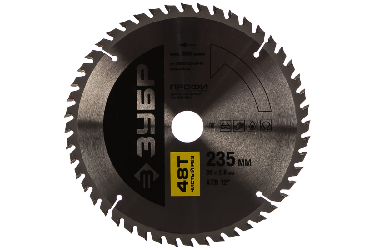Диск Зубр 36852-235-30-48 является сменным элементом для торцовочных, циркулярных пил и распиловочных станков. Применяется для точного, особо чистого пропила по фанере, столярным плитам и щитам, паркетным доскам, прессованной клееной древесине, ламинированному ДСП, МДФ, комбинированным материалам. Зубья изготовлены из улучшенного сплава ВК6Х и ВК8Х. Форма зубьев — ATB. Корпус диска изготовлен из высокоуглеродистой стали 65. Каждый диск проходит алмазную заточку на станках с ЧПУ, закалку с дополнительной стадией термообработки и контроль балансировки.