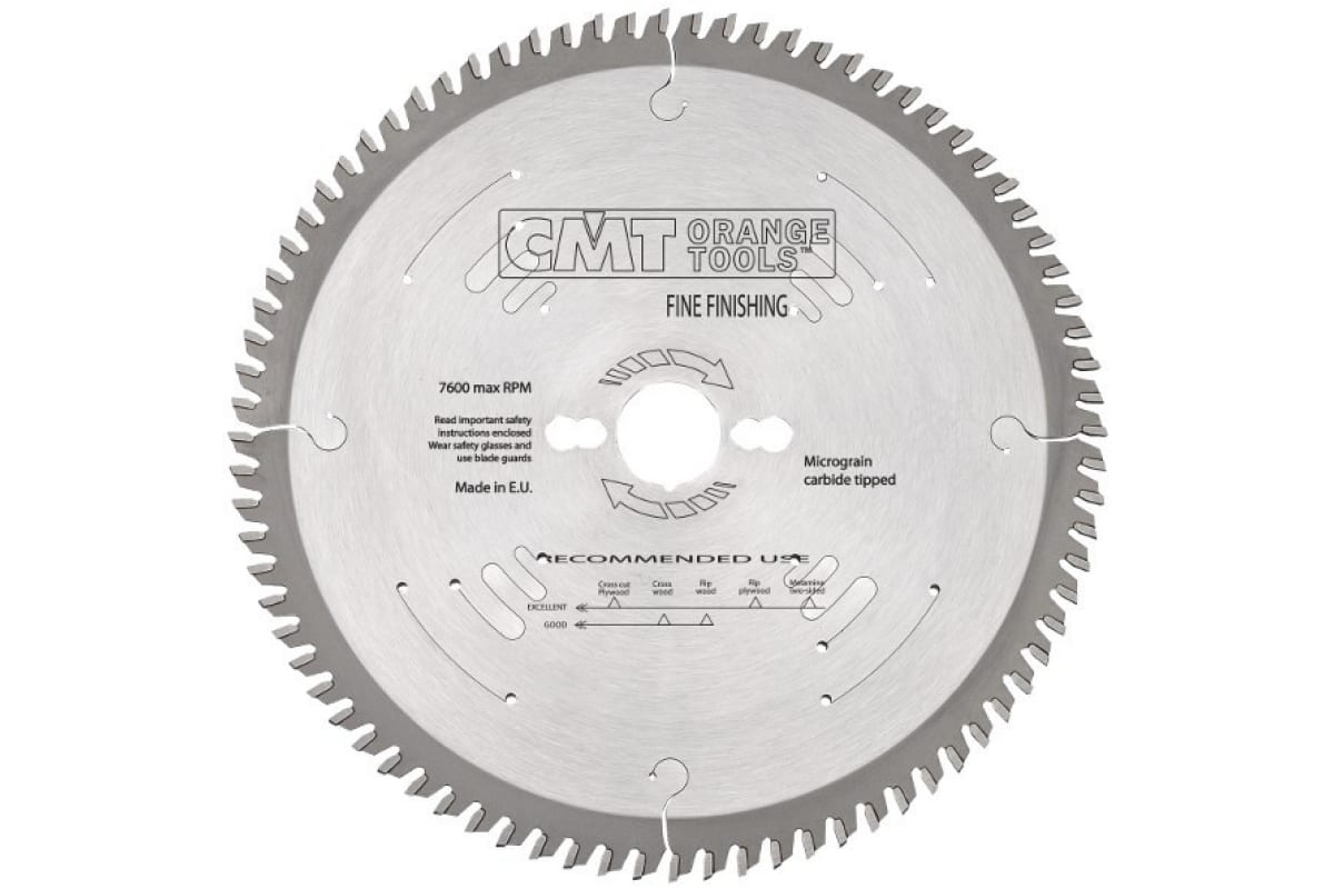 Диск пильный CMT 274.100.12M используется совместно с настольными, торцовочными и ручными циркулярными пилами, форматно-раскроечными станками. Подходит для особо чистого поперечного реза мягкой, твёрдой и экзотической древесины, фанеры, багета, шпонированных панелей. Твердосплавные чередующиеся зубья имеют специальную форму с попеременноскошенной и прямой заточкой, что обеспечивает очень чистый торцевой рез без сколов.