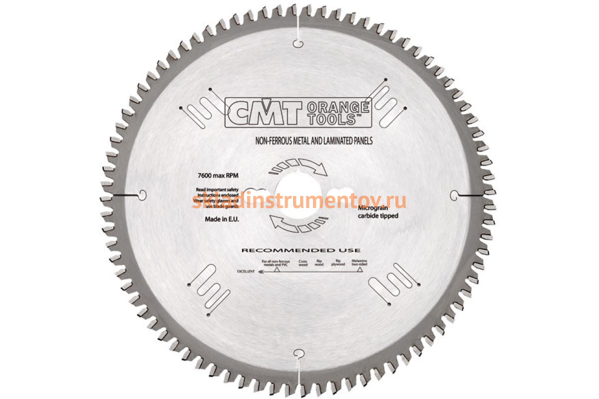 Диск пильный CMT 297.108.14P используется совместно с форматно-раскроечными станками, одно- и двухшпиндельными торцовочными станками. Подходит для резки алюминиевых и медных труб, пустотелых профилей и брусков, раскроя ламинированных панелей, ДСП, ЛДСП, МДФ. Зубья оснастки выполнены из твердого сплава и имеют специальную форму, что обеспечивает четкий рез и большой ресурс оснастки. Для пиления цветных металлов можно использовать жидкую смазку. Восковые смазки использовать не рекомендуется.