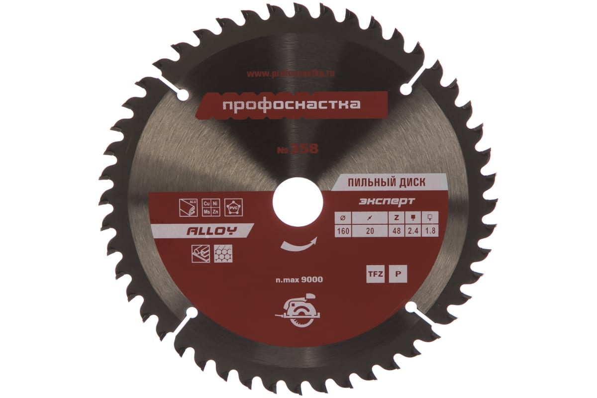 Диск пильный Эксперт ALLOY 358 Профоснастка 60301010 предназначен для ручных циркулярных пил, стационарных пил и торцовочных машин. Применяется для реза цветных металлов. Диск имеет высокие показатели по распиловке алюминия и пластика. Тип зуба – TFZ N-, отрицательный угол наклона. В комплекте идет переходное кольцо с диаметра посадки 20 мм на диаметр посадки 16 мм.
