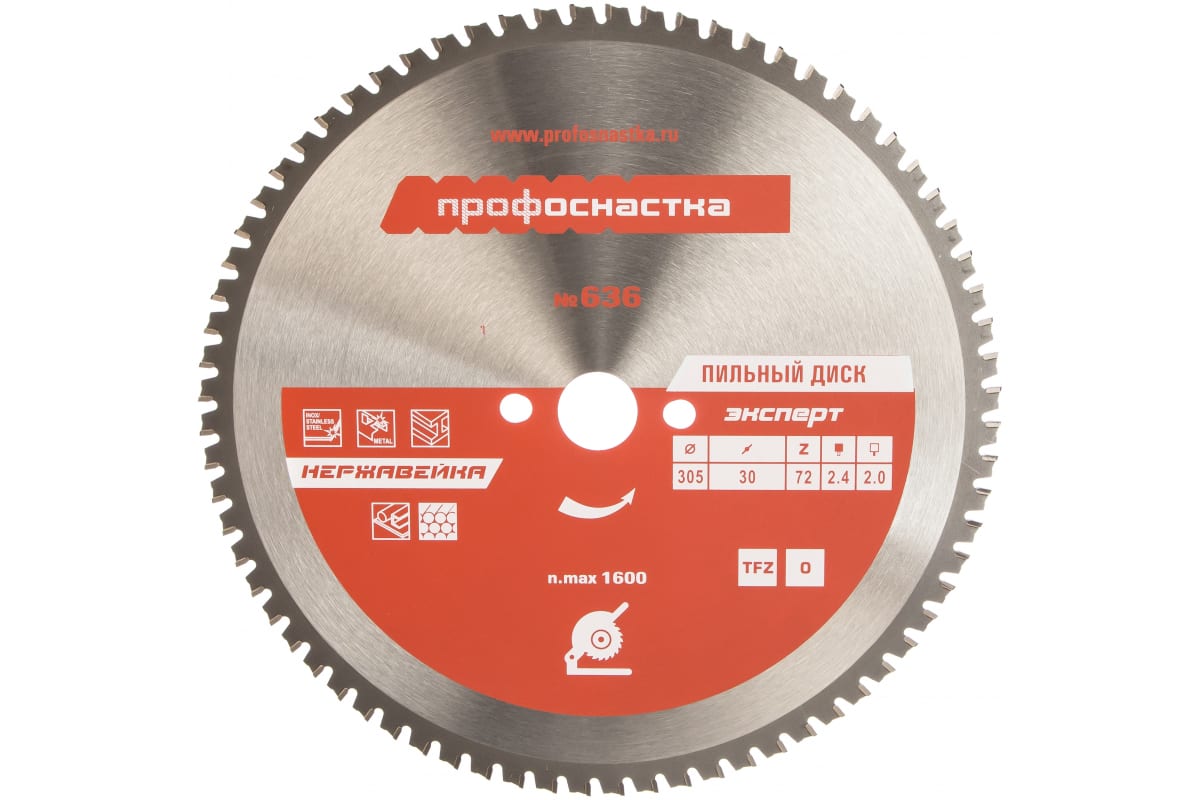 Диск пильный Эксперт № 636 ПрофОснастка 60502011 предназначен для работы на специализированном оборудовании при количестве оборотов, не превышающих 1600 оборотов в минуту. Применяется для распиловки нержавеющих сталей. Тип зуба – TFZ (0), нулевой угол наклона. В комплекте идет переходное кольцо с диаметра посадки 30 мм на диаметр посадки 25.4 мм.