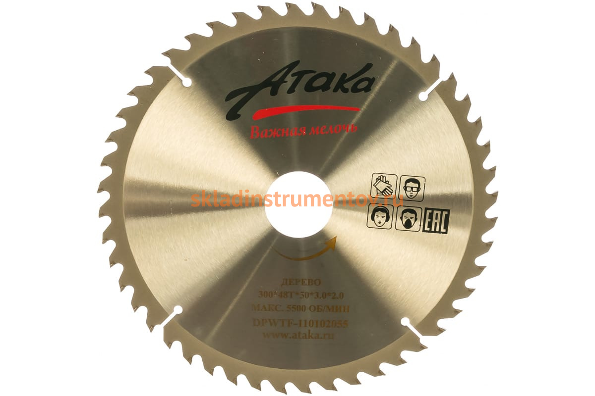 —Диск пильный по дереву (300х50 мм; 48T; б/рез) АТАКА 8079430—