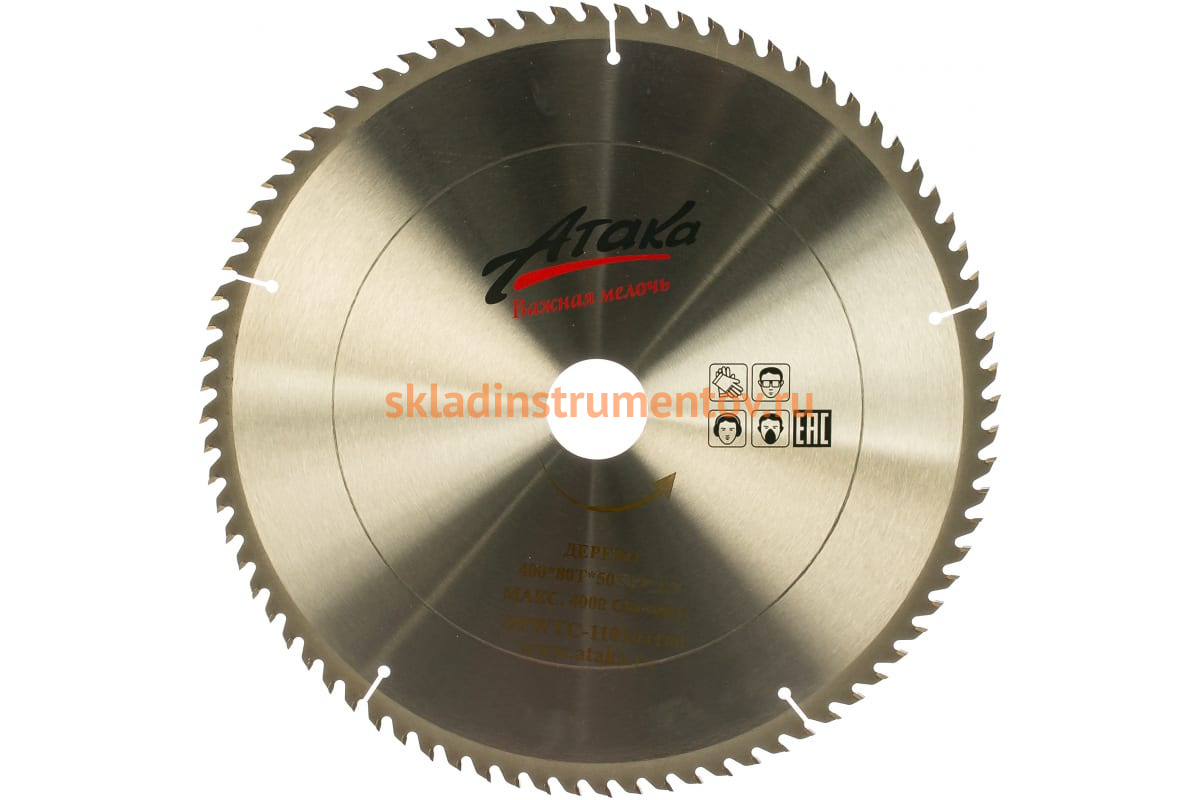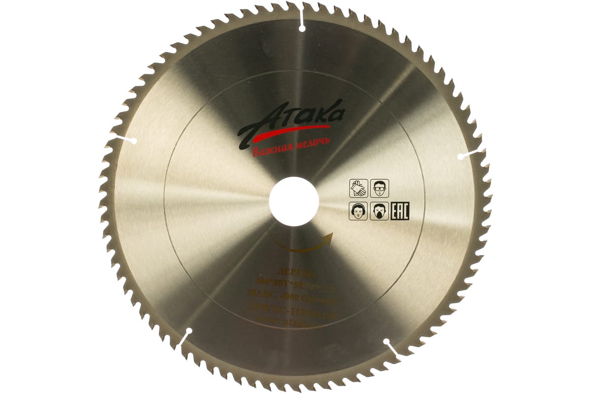 —Диск пильный по дереву (400х50 мм; 80T; ч/рез) АТАКА 8079750