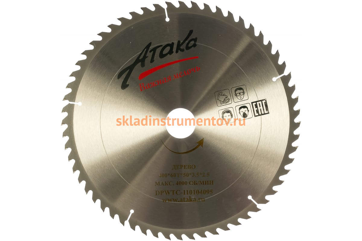 Диск пильный по дереву (400х50 мм; 60T; ч/рез) АТАКА 8079230