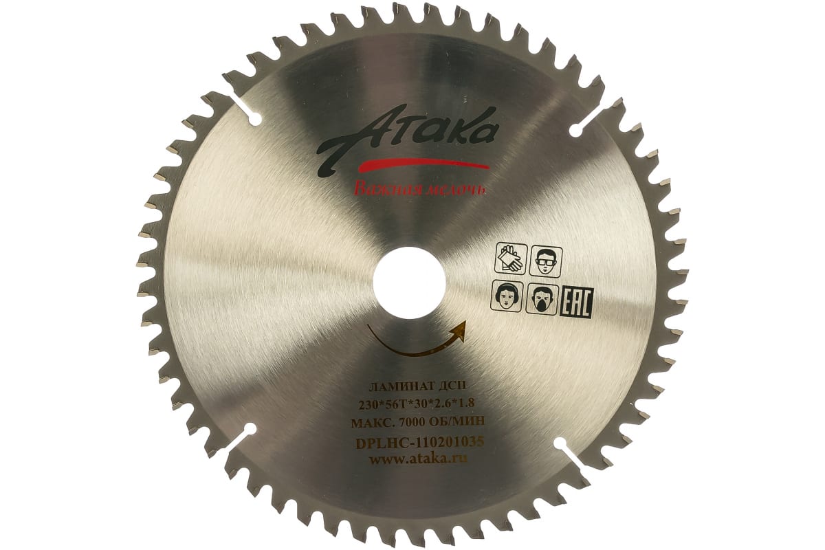 Диск пильный по ламинату и дсп (230х30 мм; 56T; ч/рез отриц.) АТАКА 8078230
